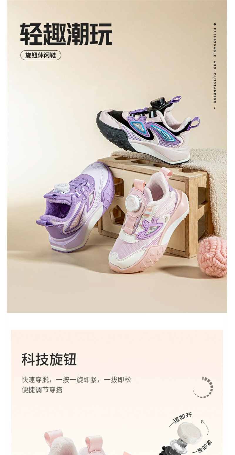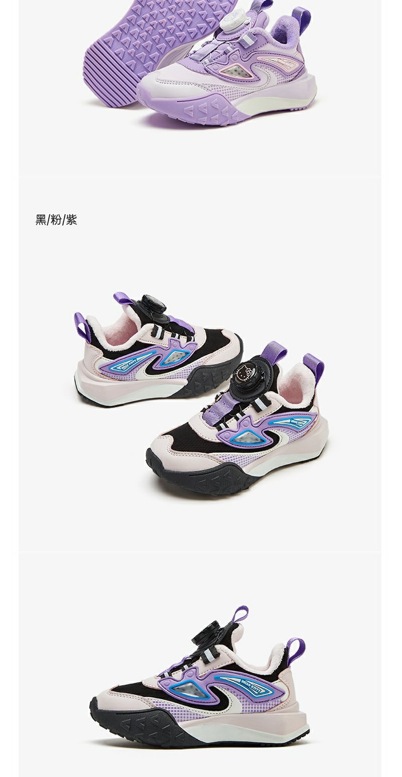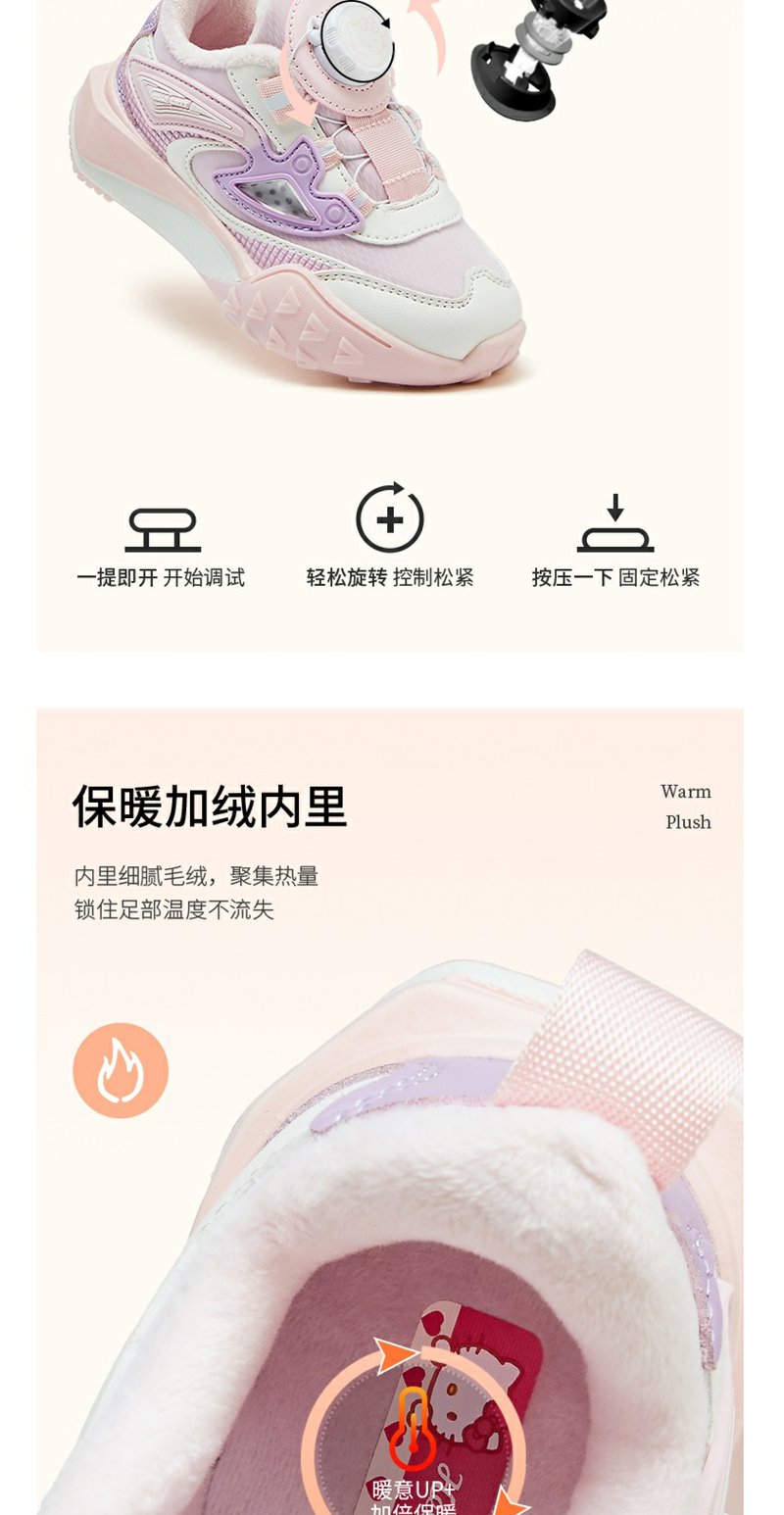 HelloKitty童鞋儿童旋钮鞋冬季新款中大童女孩加绒保暖棉鞋运动鞋