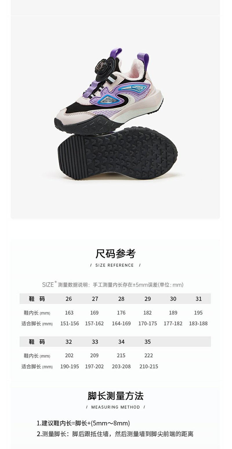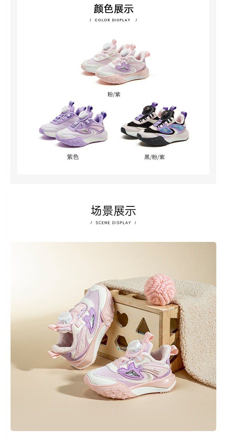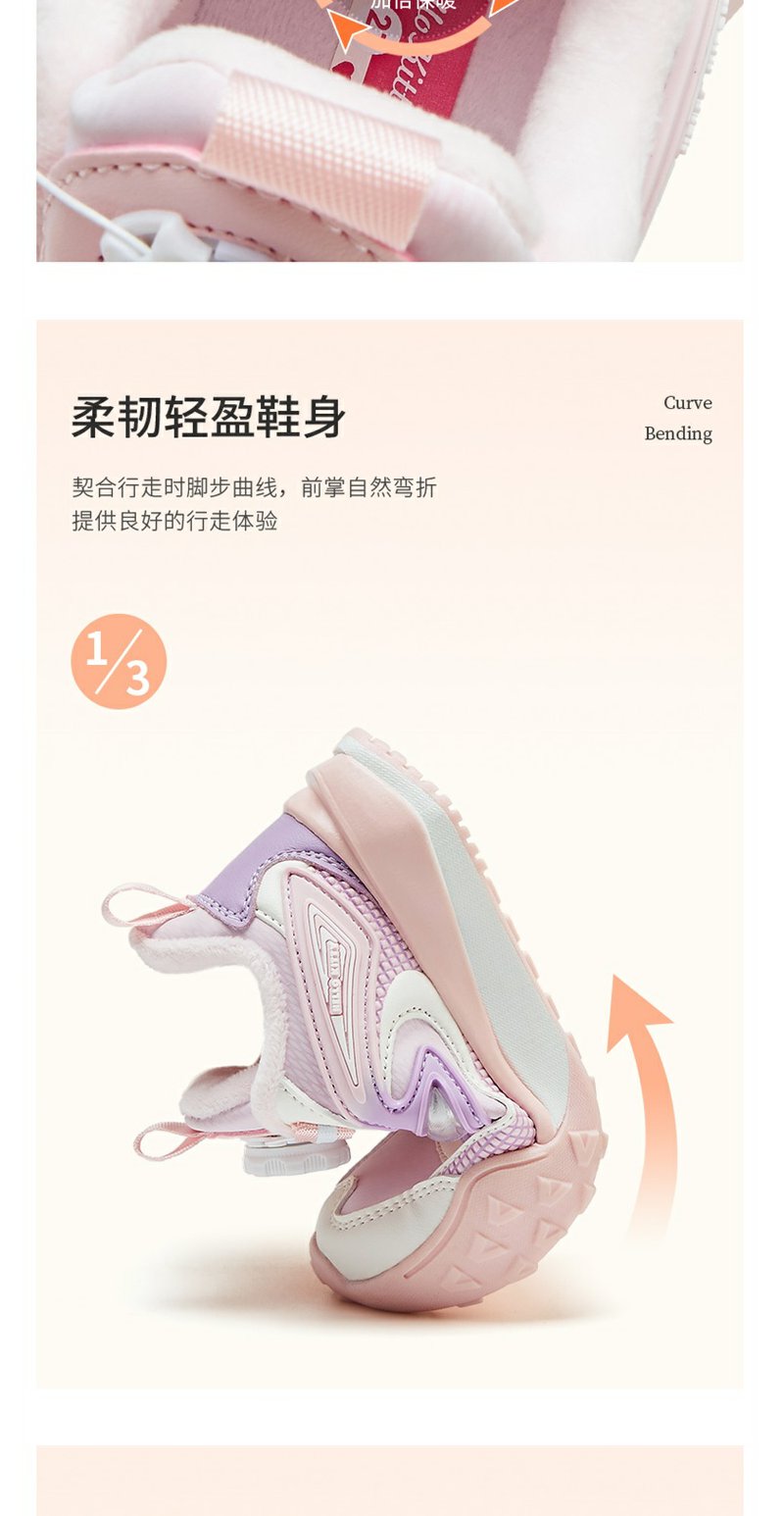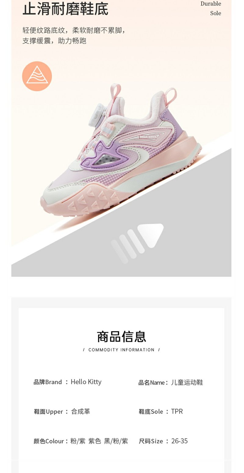 HelloKitty童鞋儿童旋钮鞋冬季新款中大童女孩加绒保暖棉鞋运动鞋