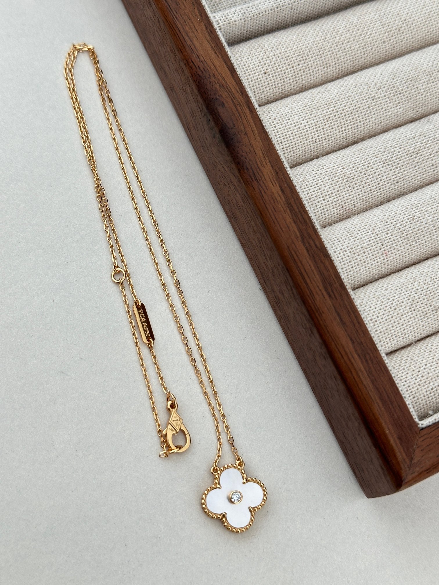 在基础版本上四叶草中间镶嵌一颗宝石,小小的钻bling bling,镶嵌珍珠贝母阳光下折射七彩光晕!除了喜欢四叶草的寓意外,这种细细精致的镂空项链戴起来若隐若现,又不会太浮夸,气质来的刚刚好!