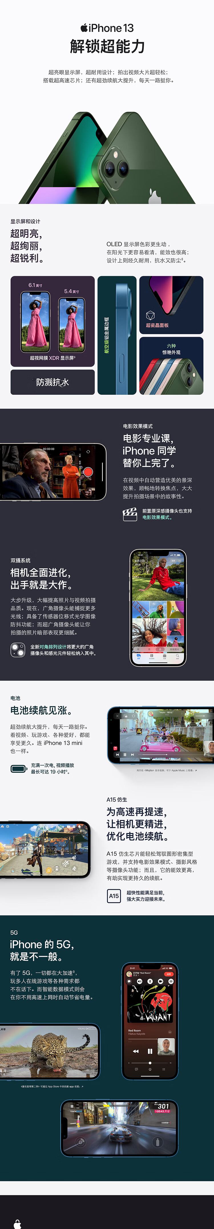 Apple iPhone 13 mini 支持移动联通电信5G