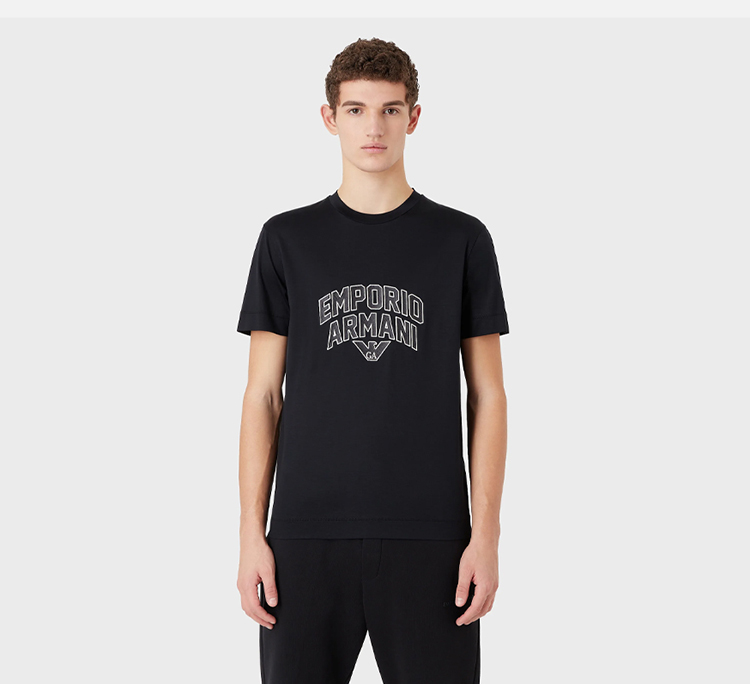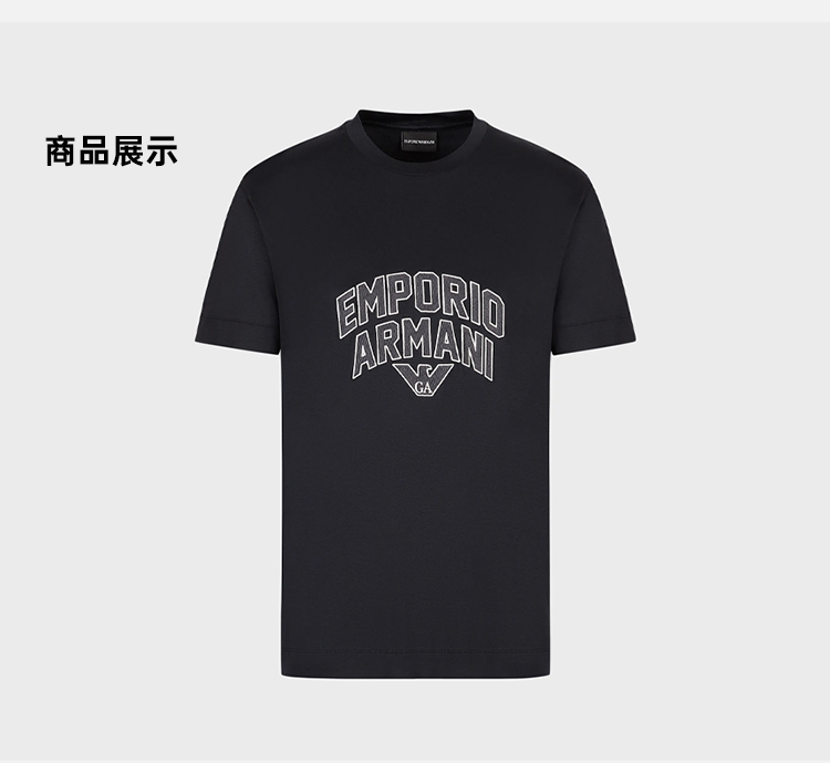 EMPORIO ARMANI 阿玛尼 男士字母徽标印花圆领短袖T恤 蓝色 3R1TBF 1JUVZ 0920