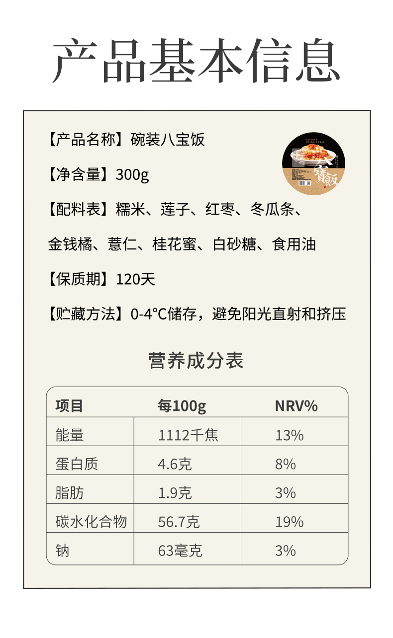 【严选】百年聚珍园过年甜点糯米八宝饭300g/袋*3袋