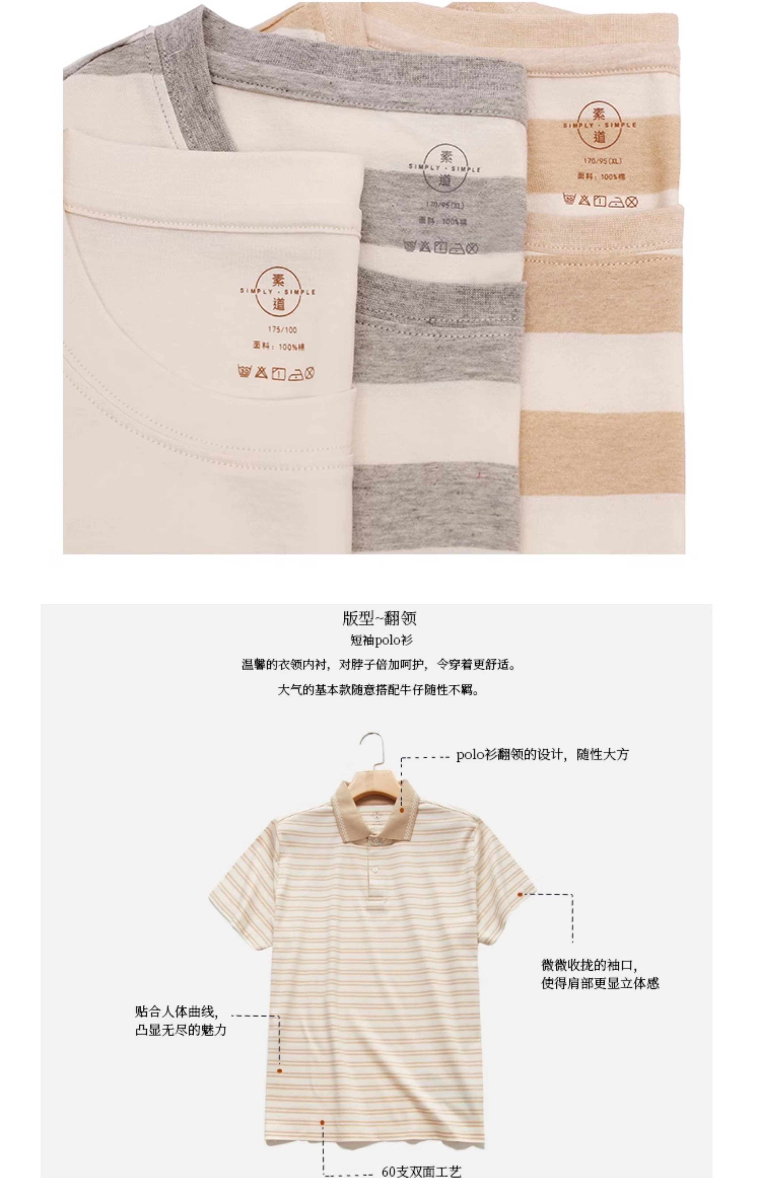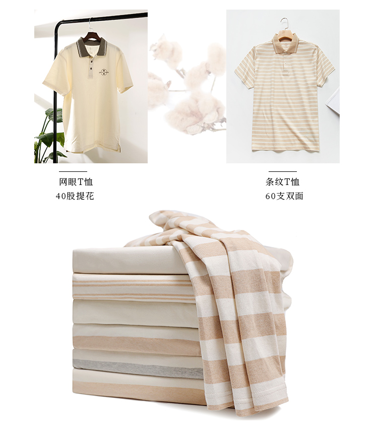 【断码清仓】素道有机彩棉 夏季情侣T恤 透气纯棉半袖翻领短袖polo衫 男士五分裤