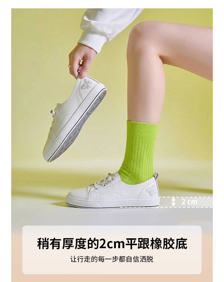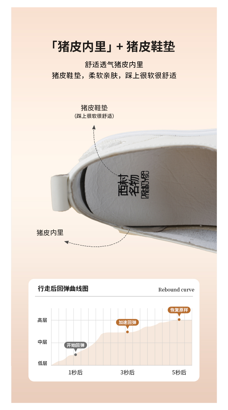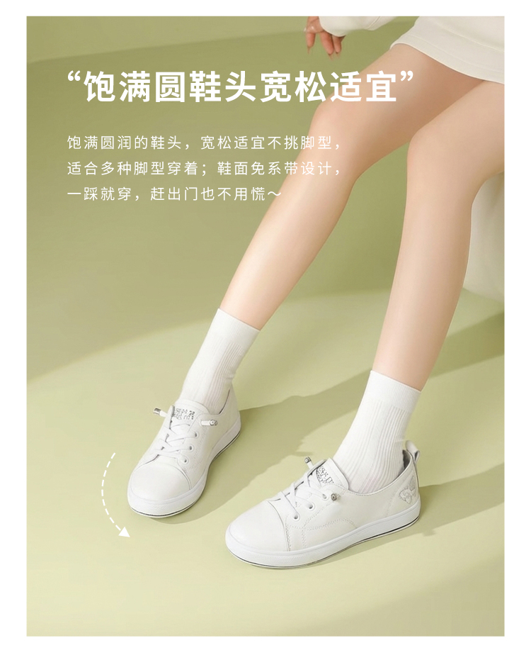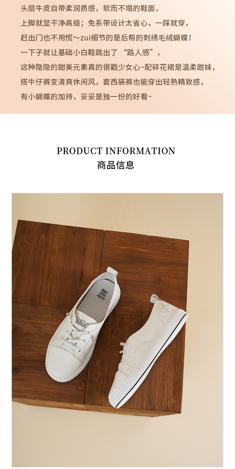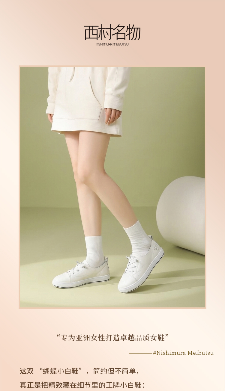 【牛皮革】西村名物2026年春季新款饱满圆通舒适宽松免系带薄底小白鞋T26AM17401