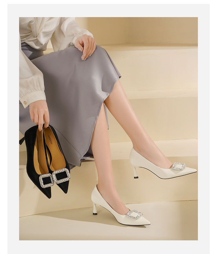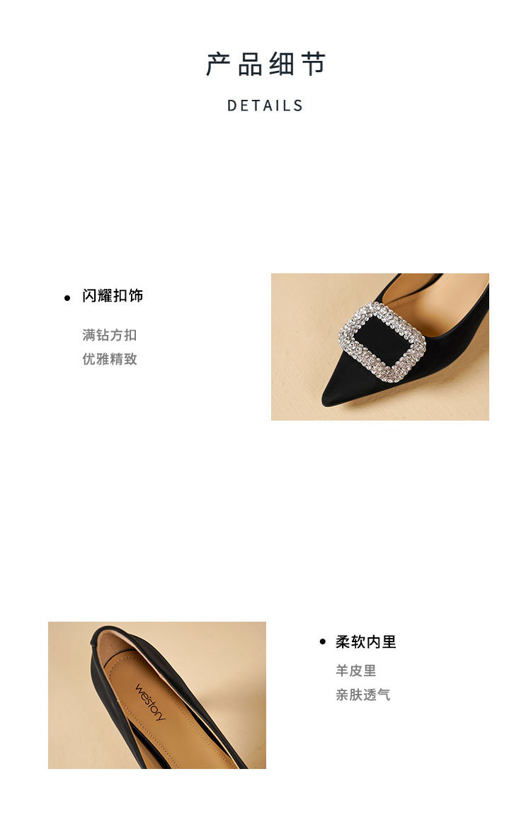 Westory2025年春季尖头中跟方扣通勤宴会浅口单鞋S25AE58761