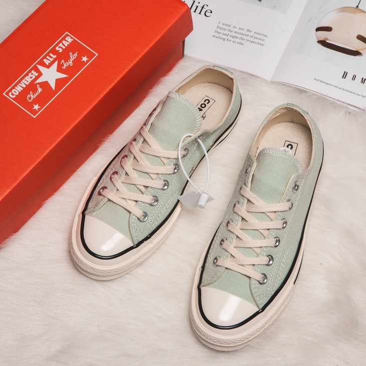#灰绿色# 🎉🎉🎉 CONVERSE官网Chuck 70 Varsity Remix 颜色无敌抢眼,反鞋舌的设计非常独特,想不要回头率都难! 型号:166824c 尺码:35--44