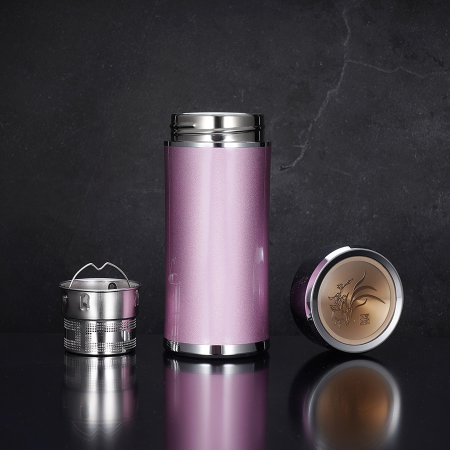 【寓意】:泡茶杯杯身线条流畅优雅。内壁采用足银材质打造,外层经过烤漆处理,杯盖饰以兰花图案,简约而不失高雅,静谧中传递美好与茶香。