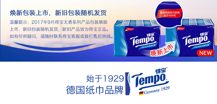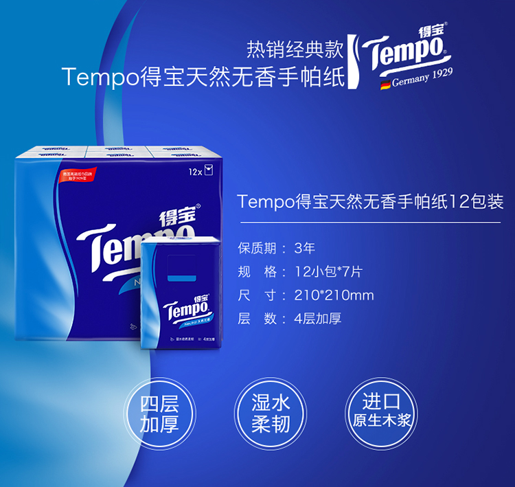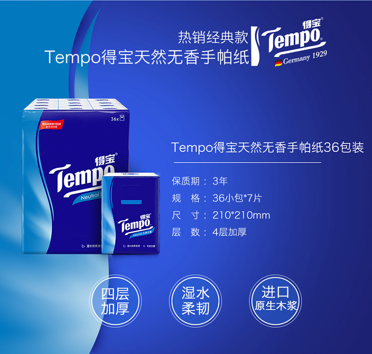 『得宝Tempo』经典无香手帕纸4层36包+经典无香手帕纸4层12包 共48包