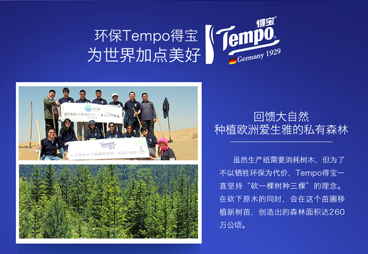 f『得宝Tempo』lotion抽取式乳霜柔软纸面巾70抽四层4包*2提 共8包