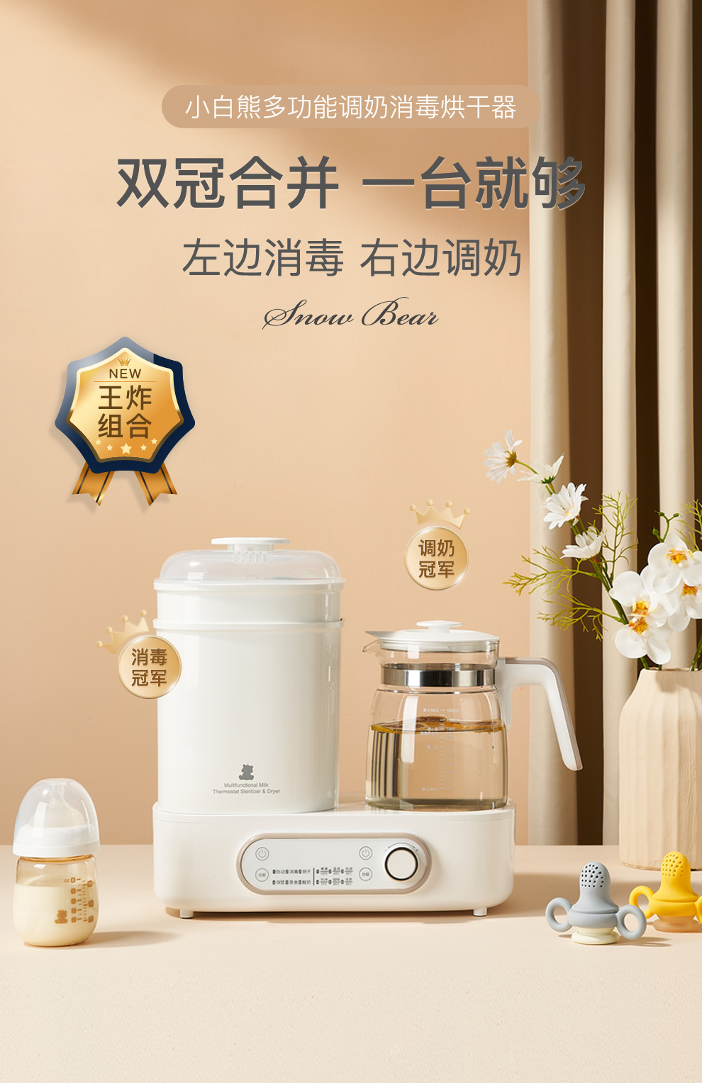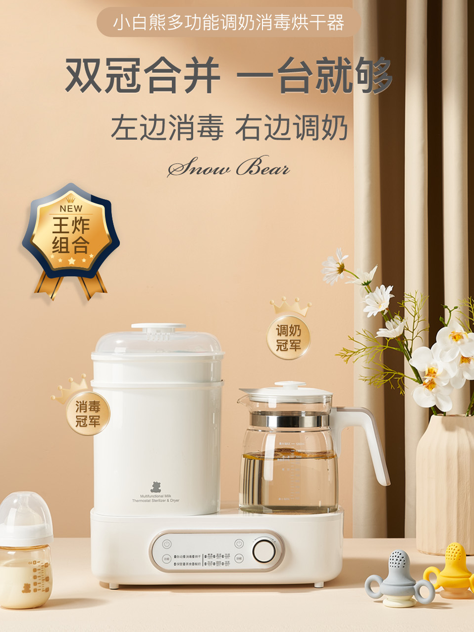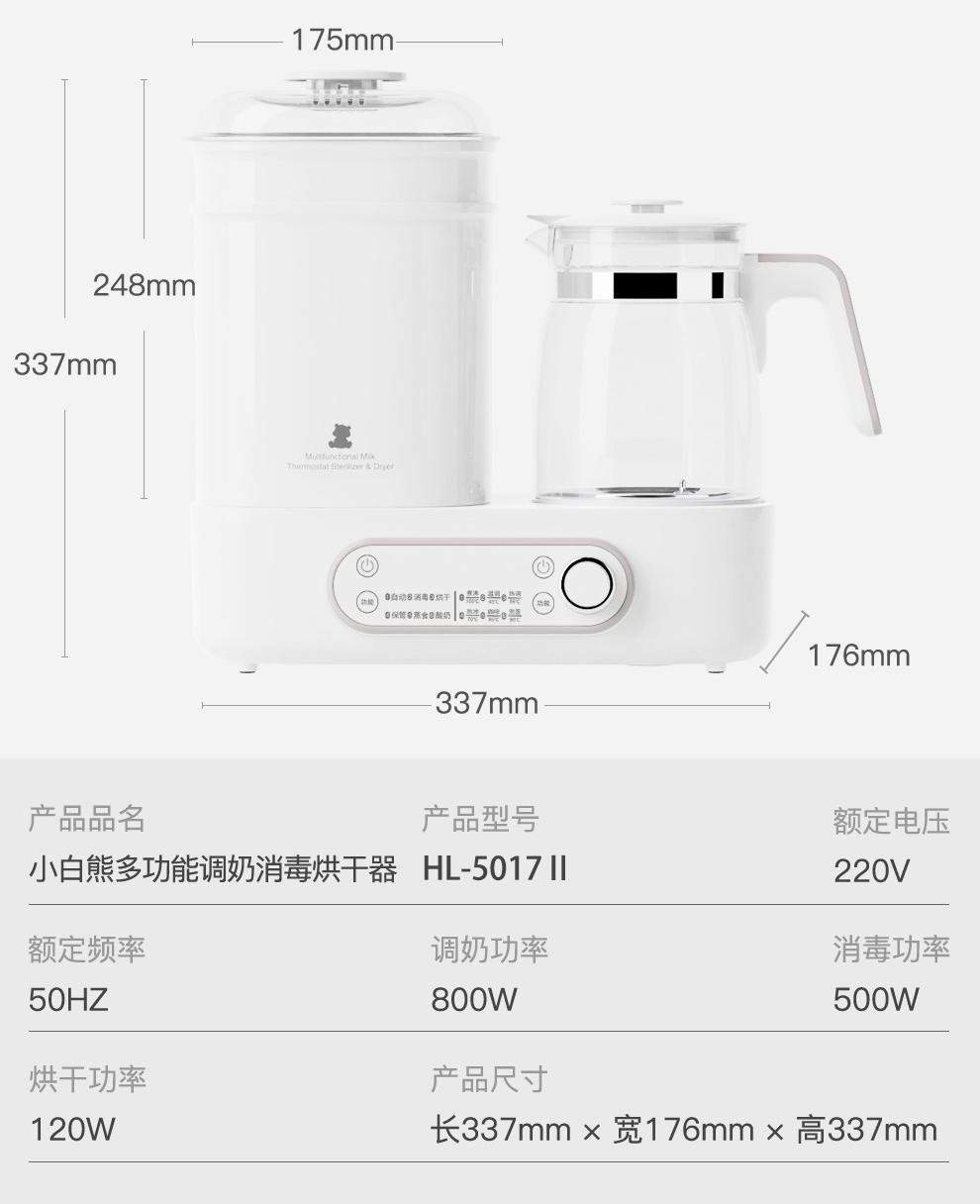 小白熊调奶器奶瓶消毒器HL-5017带烘干二三合一恒温热水壶热奶
