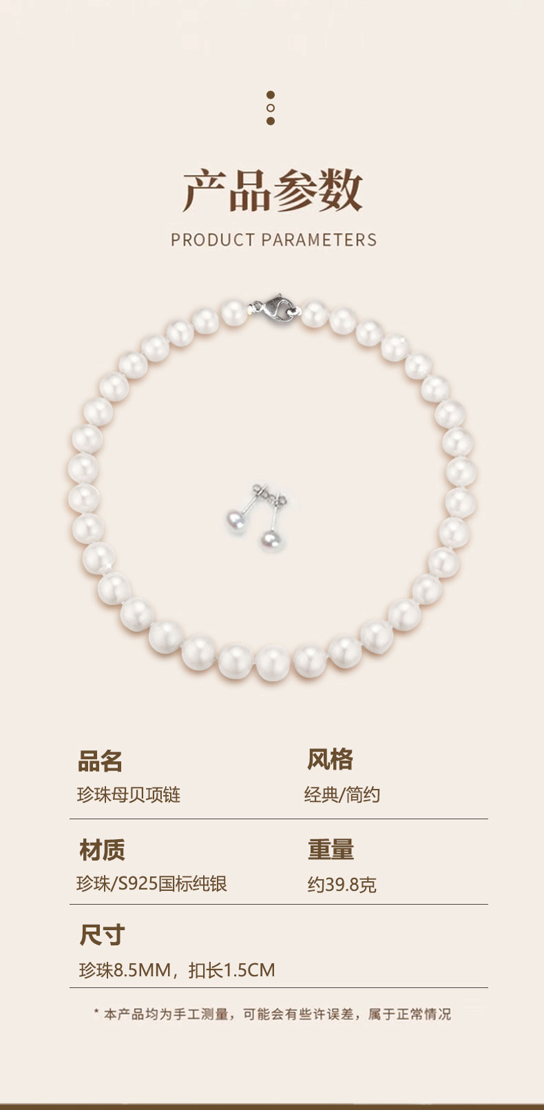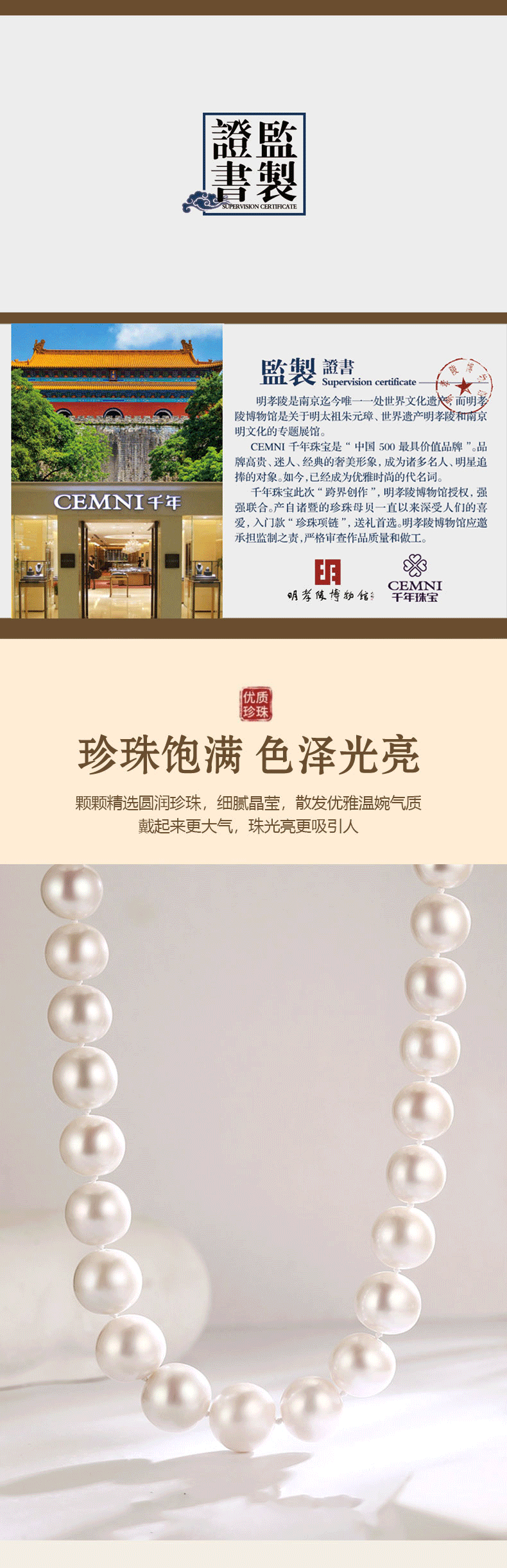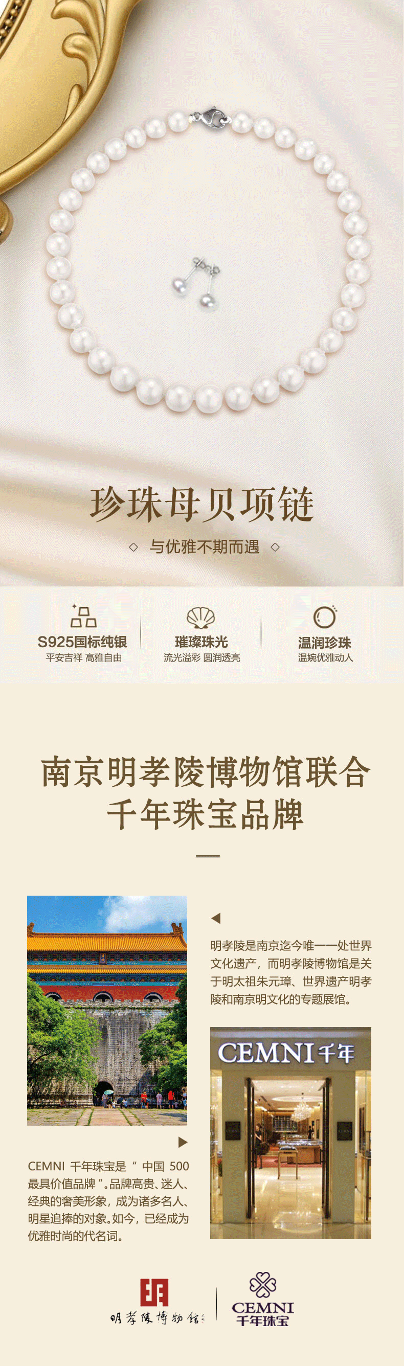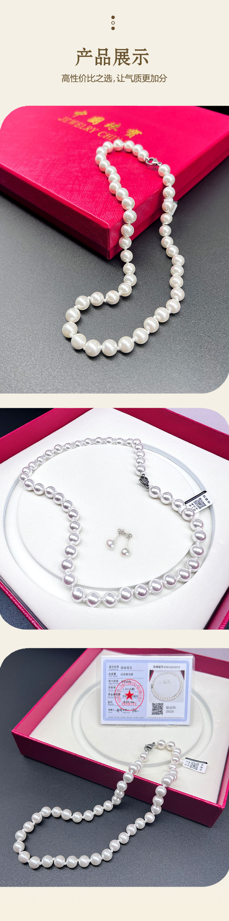 赠一对同款珍珠耳钉‼️【明孝陵博物馆严选 千年珠宝出品】珍珠母贝项链套盒,8-9mm珍珠项链