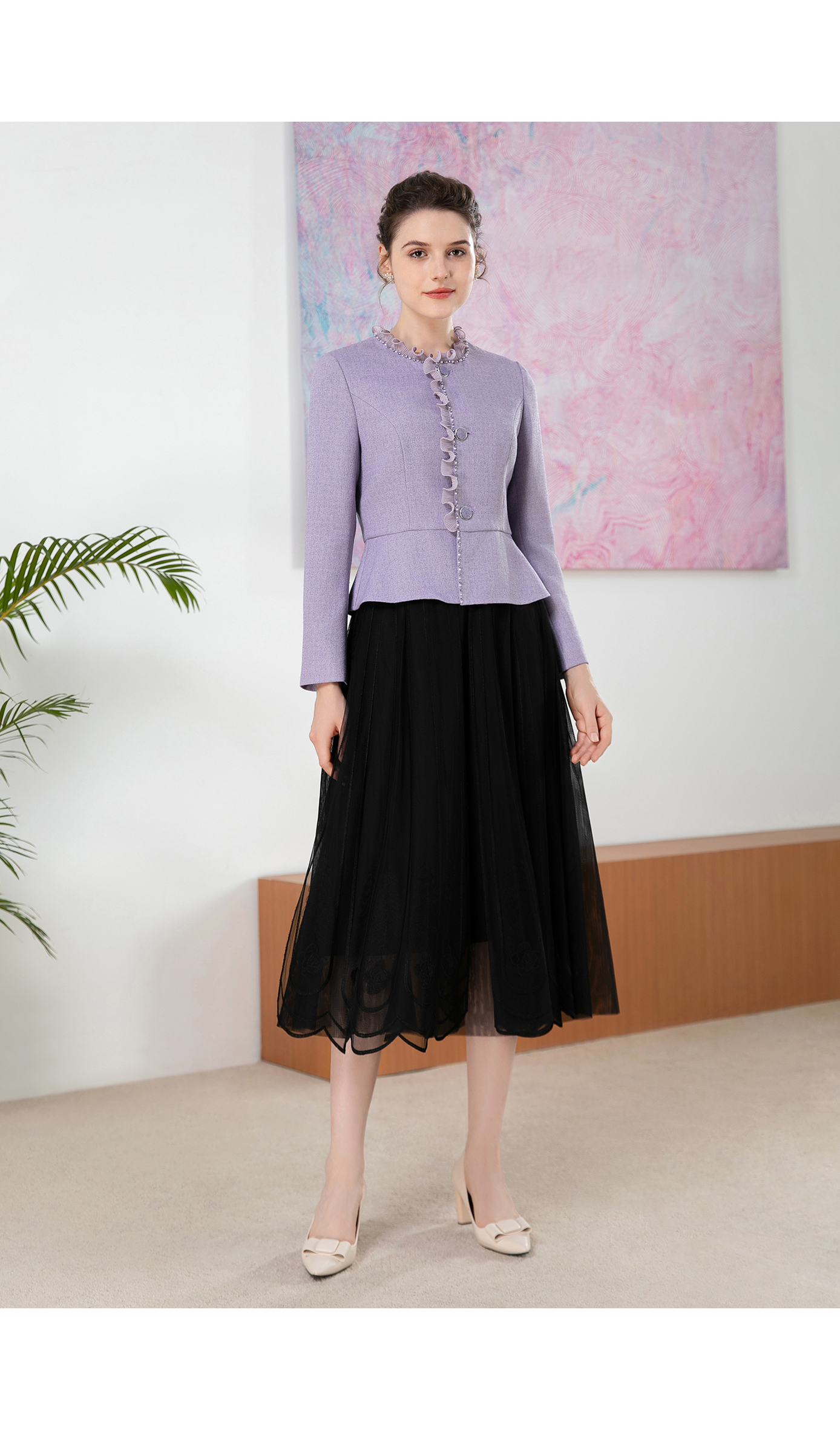 司歌收腰荷叶外套长袖秋冬女小香风B901217X
