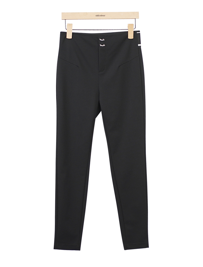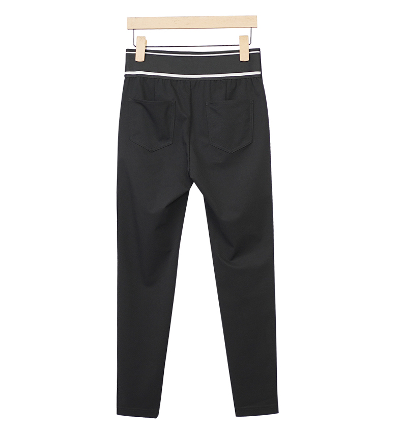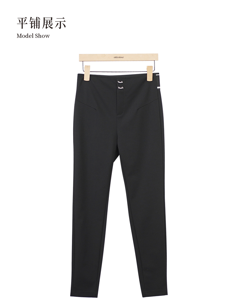 oldcolour黑色高腰休闲裤秋季新款修身收脚长款铅笔裤女O33073354