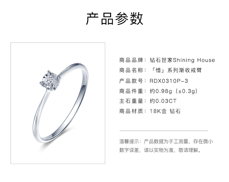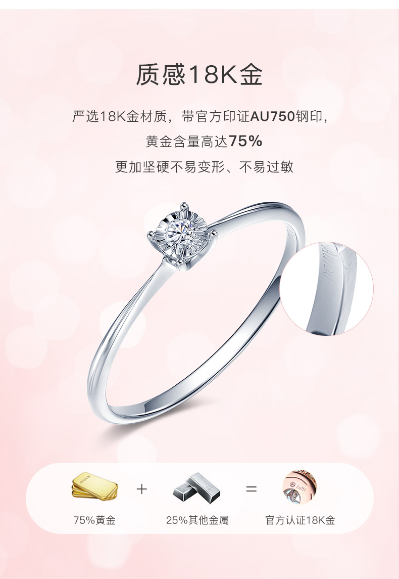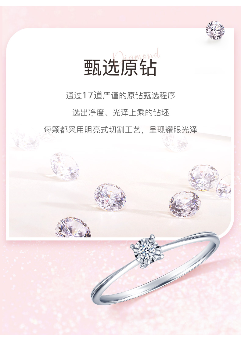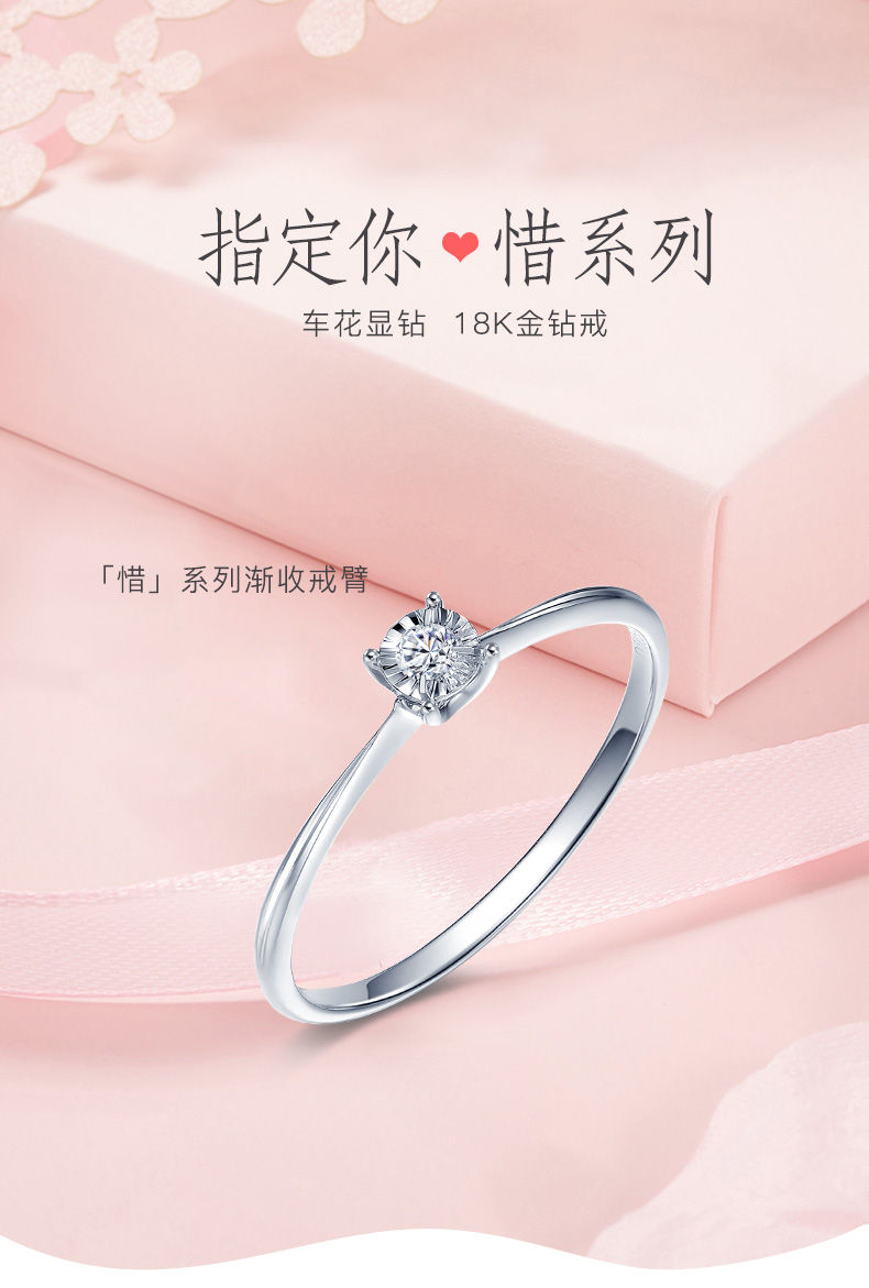 【甄选钻饰】【专享】钻石世家 [惜]系列 18K金钻石戒指 显钻钻石戒指简约钻戒 星芒切割镶嵌术 钻石世家专款钻饰(主石约0.03ct)