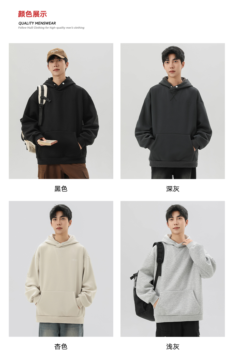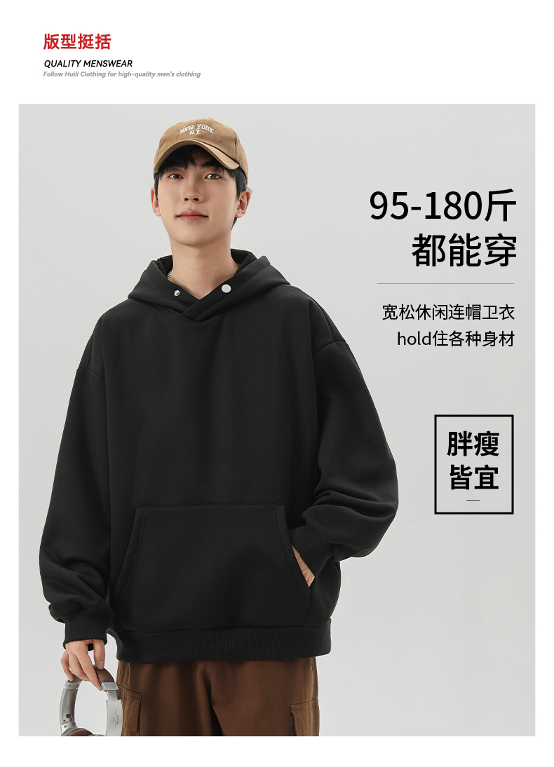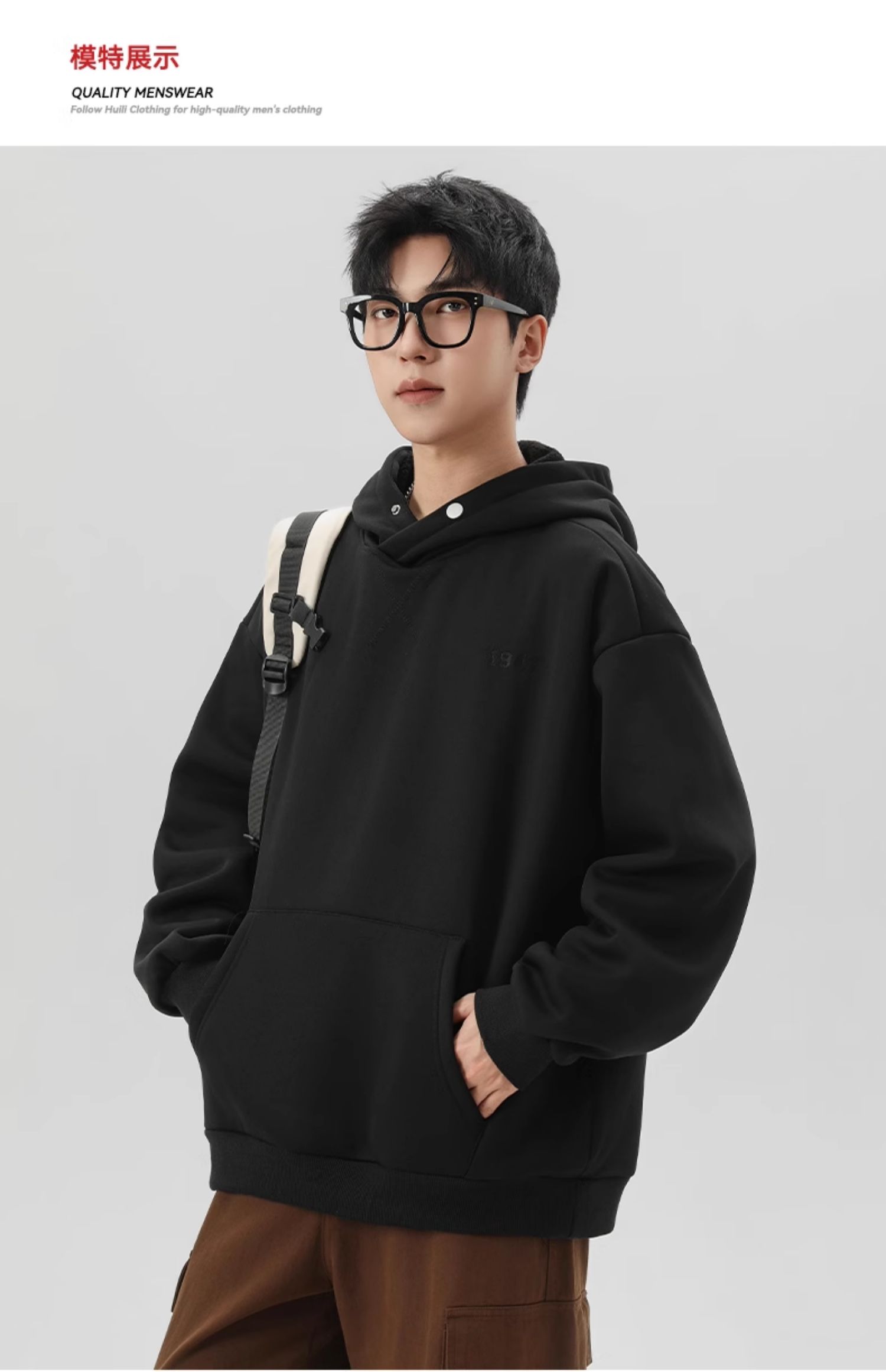 回力连帽卫衣男春秋款黑色重磅美式帽衫宽松休闲加绒秋冬男士外套