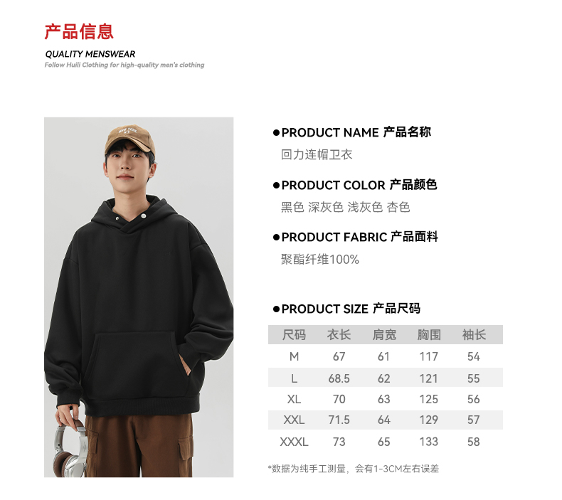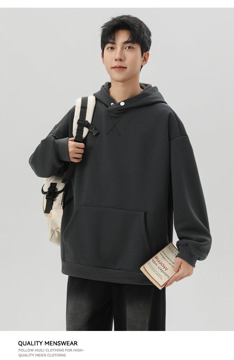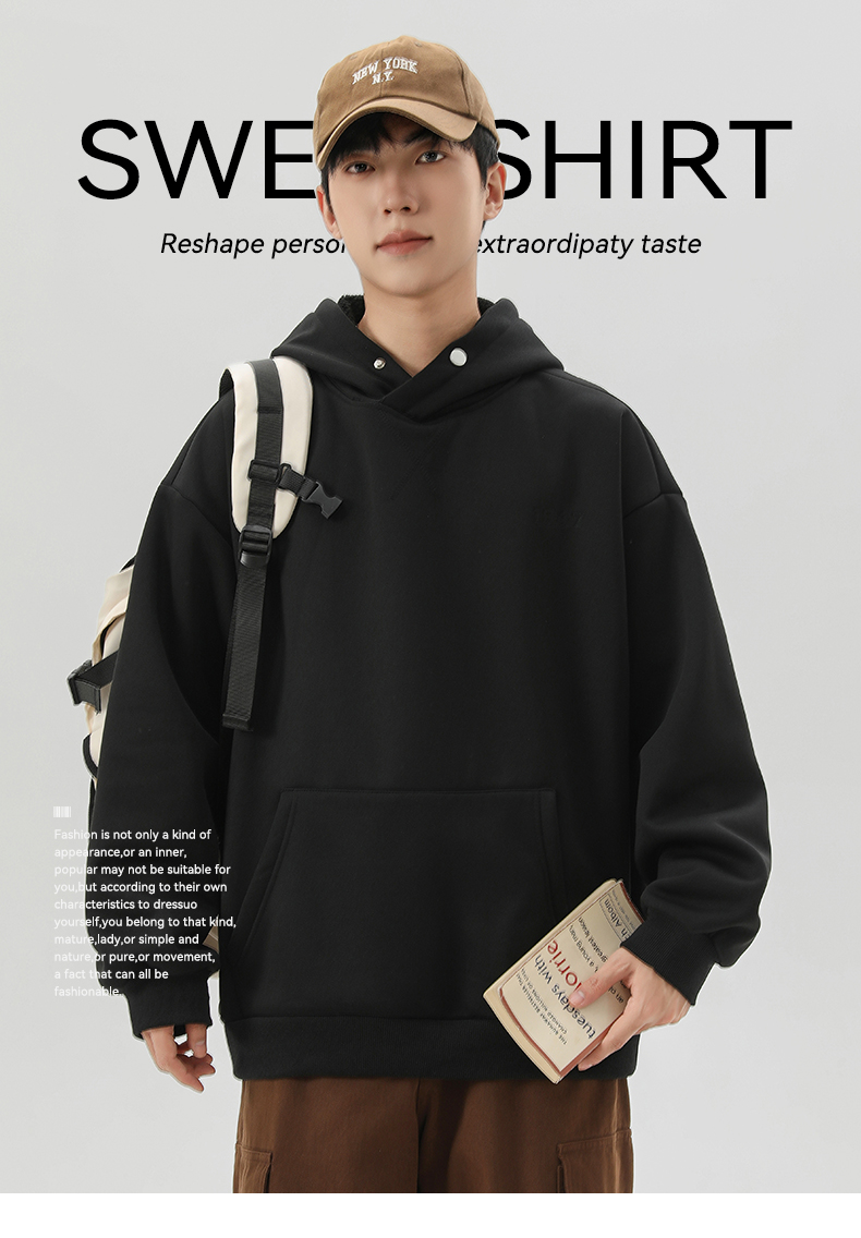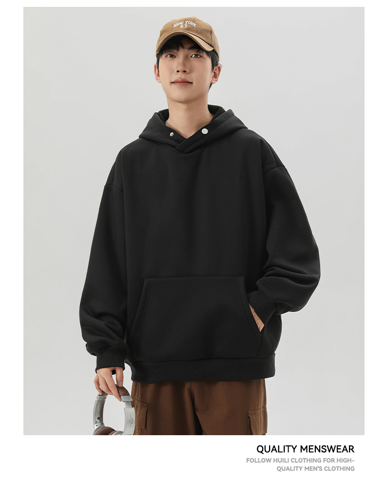 回力连帽卫衣男春秋款黑色重磅美式帽衫宽松休闲加绒秋冬男士外套
