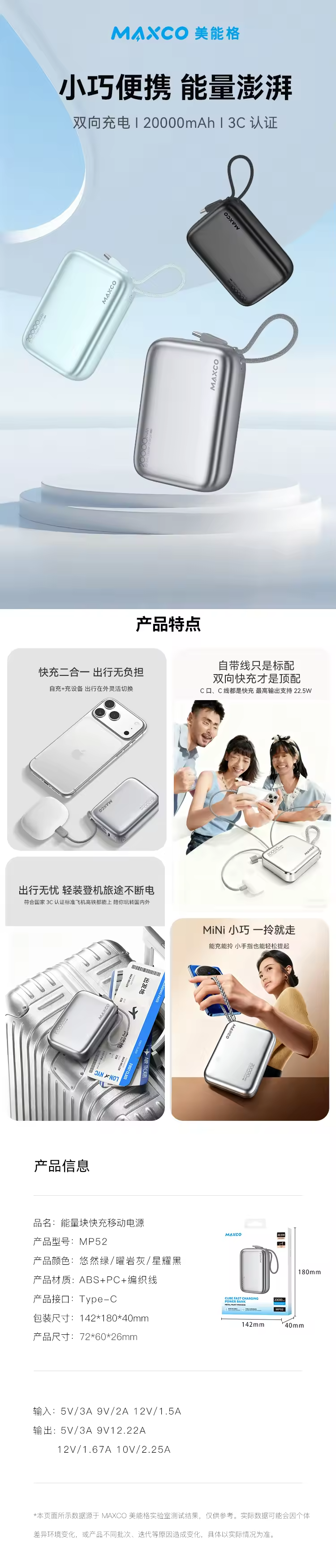 MAXCO美能格 MP52 能量块 22.5W 快充移动电源
