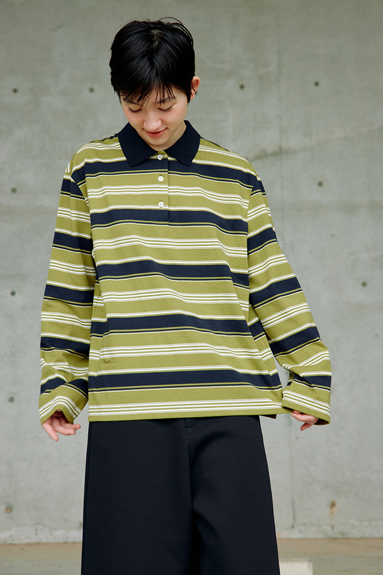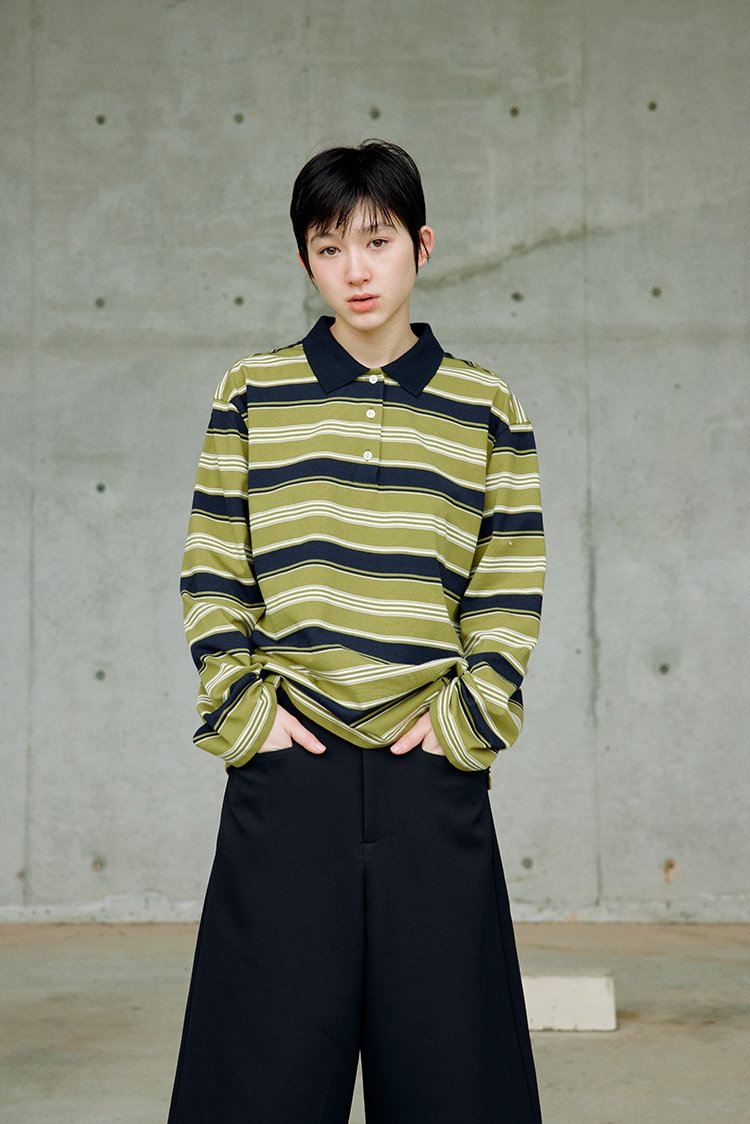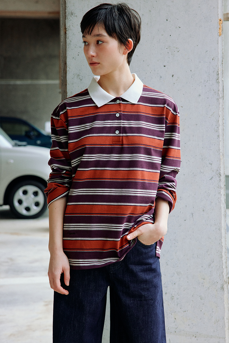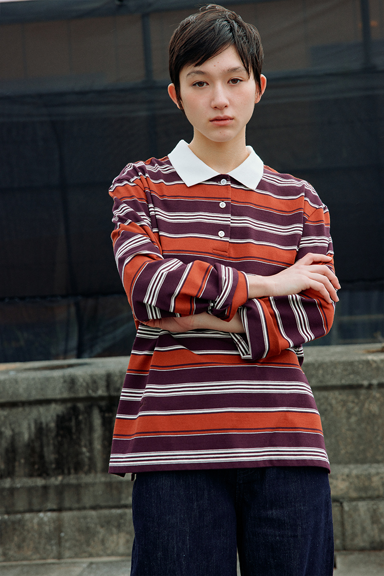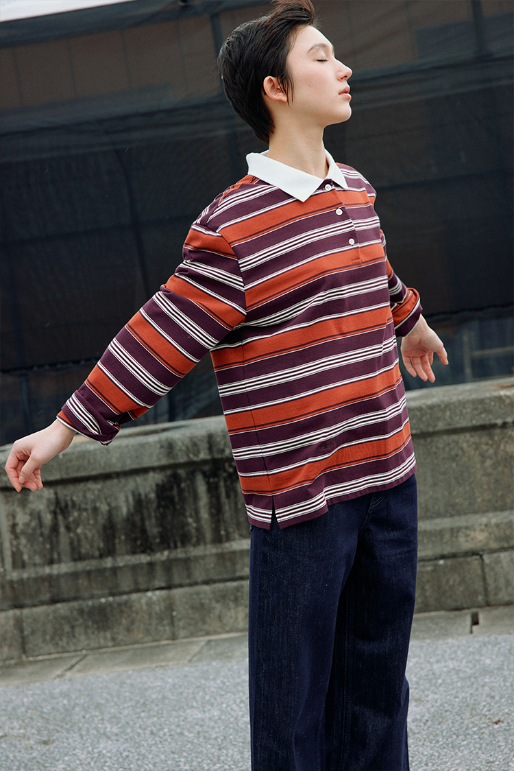 shyshystill/shy202411043/缤纷撞色粗细宽条纹松弛感复古休闲polo长袖