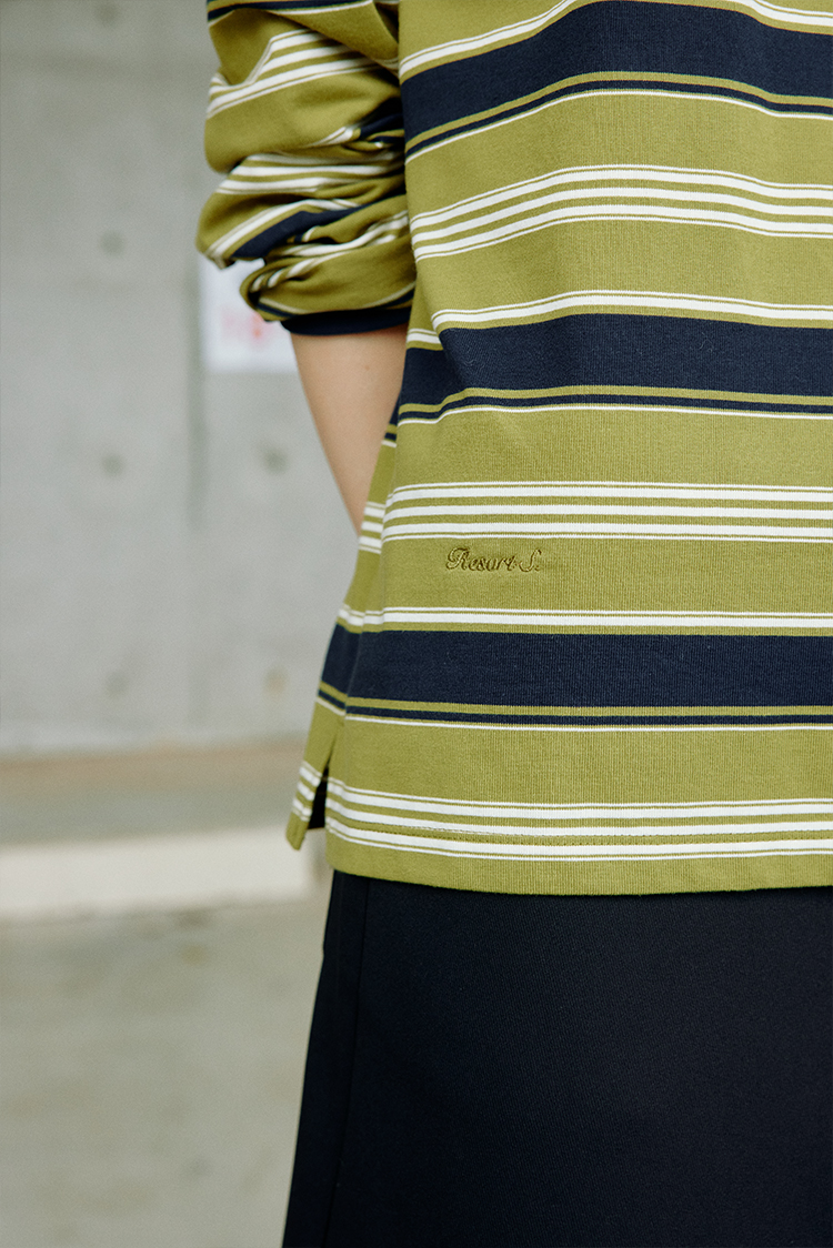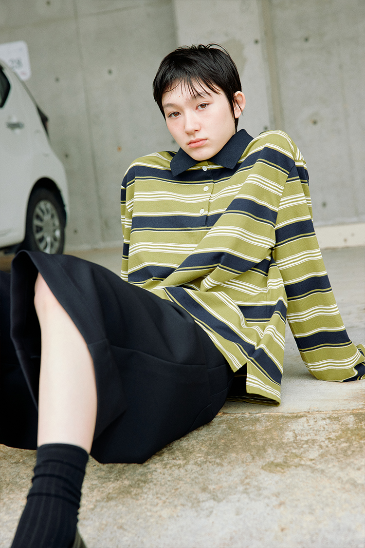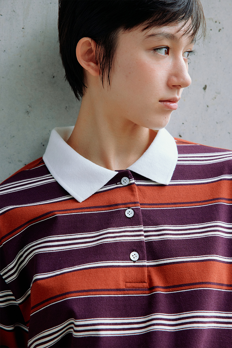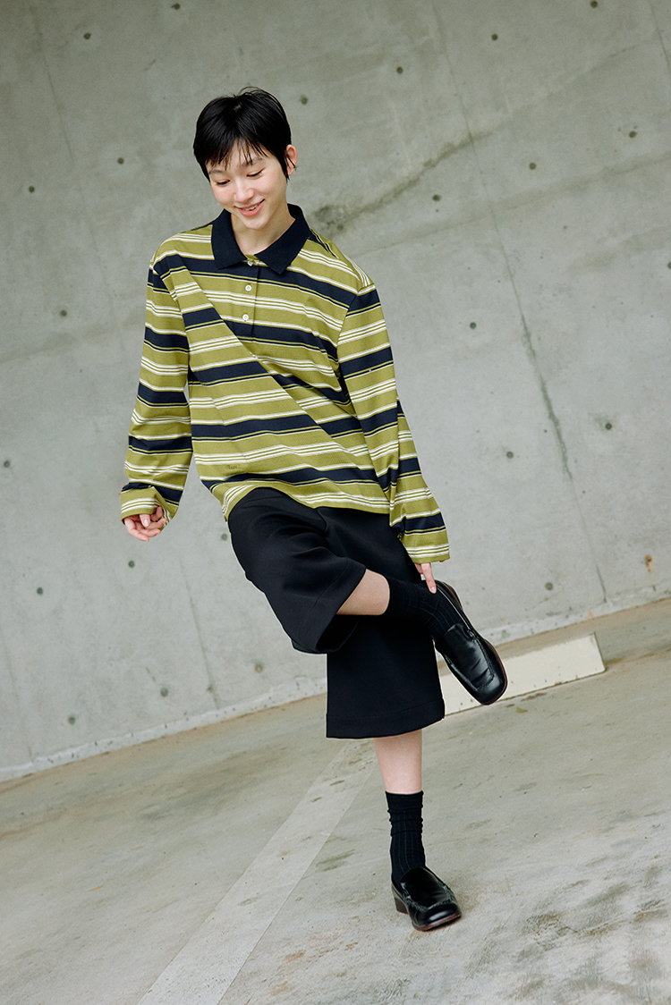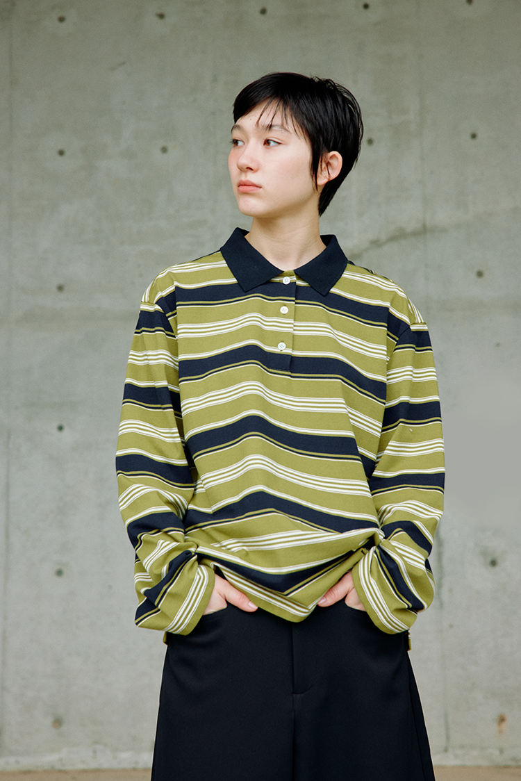 shyshystill/shy202411043/缤纷撞色粗细宽条纹松弛感复古休闲polo长袖