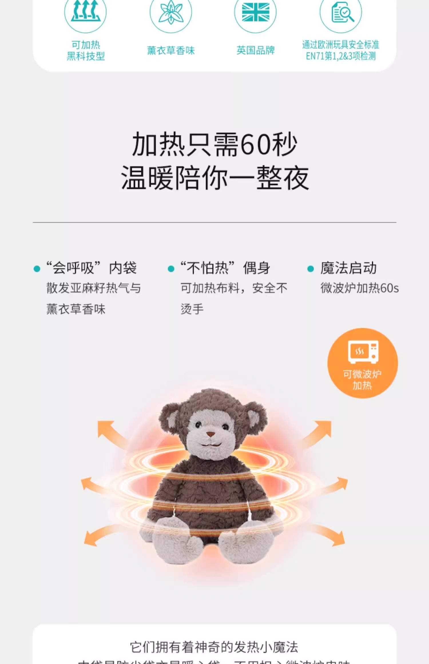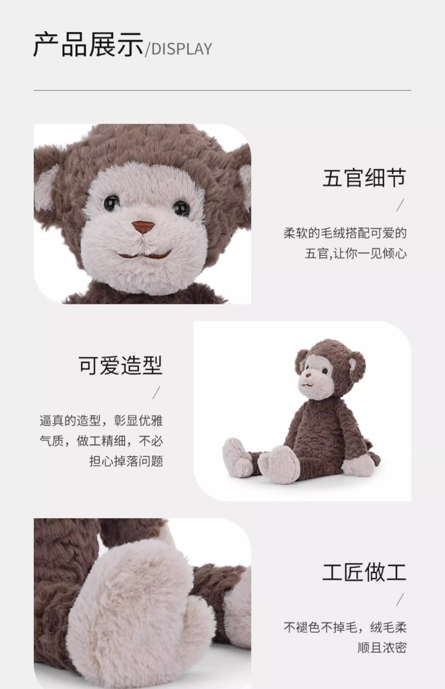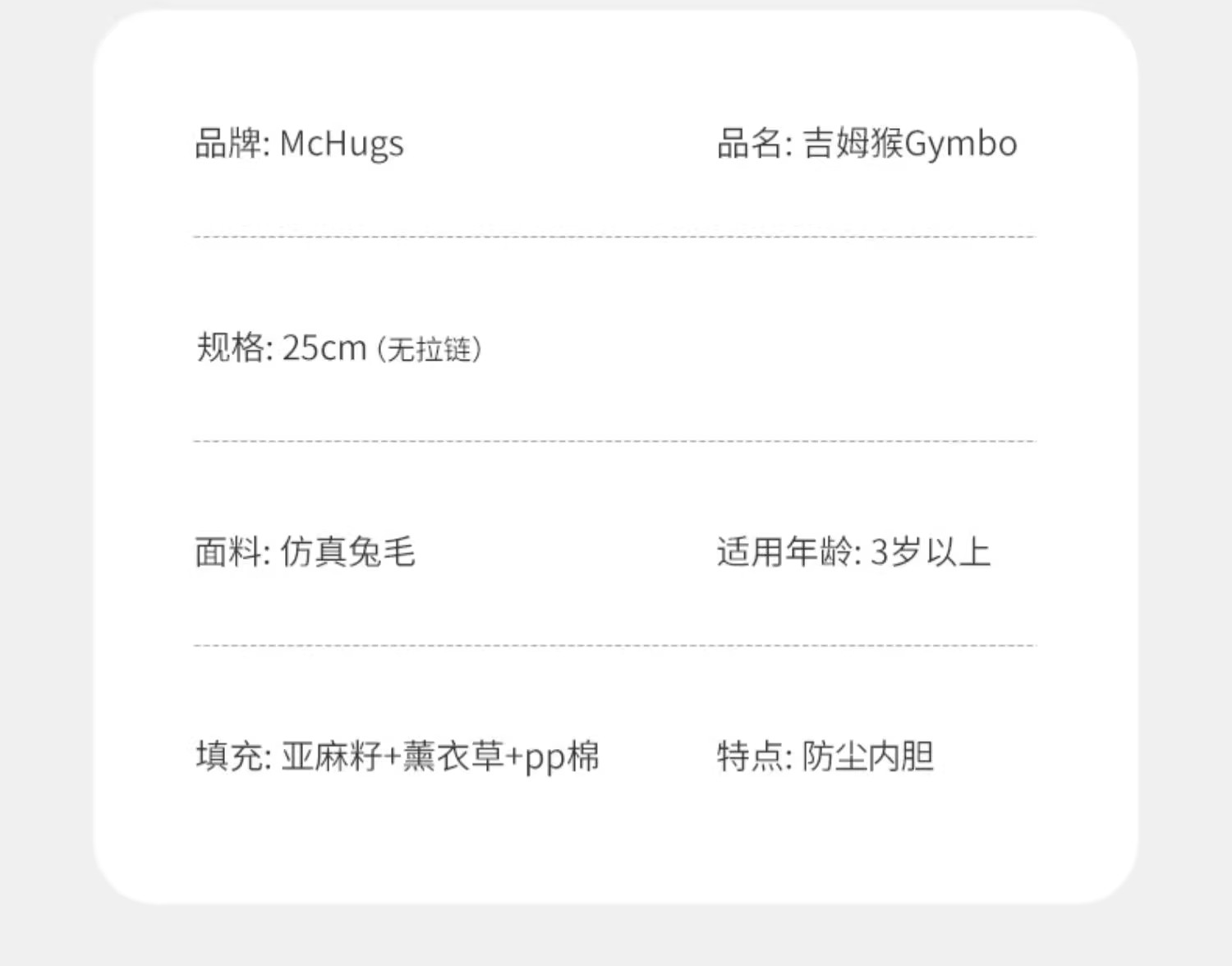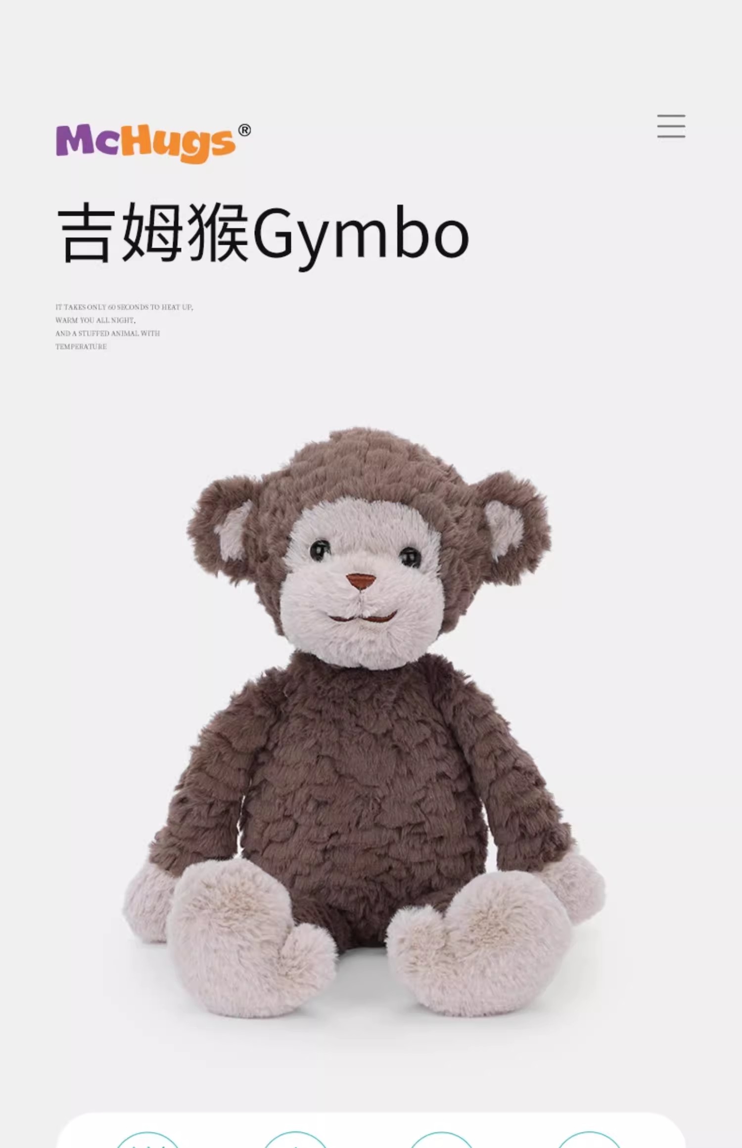 MCHugs 吉姆猴 毛绒玩偶可加热薰衣草味礼品玩具公仔布娃娃抱睡25CM