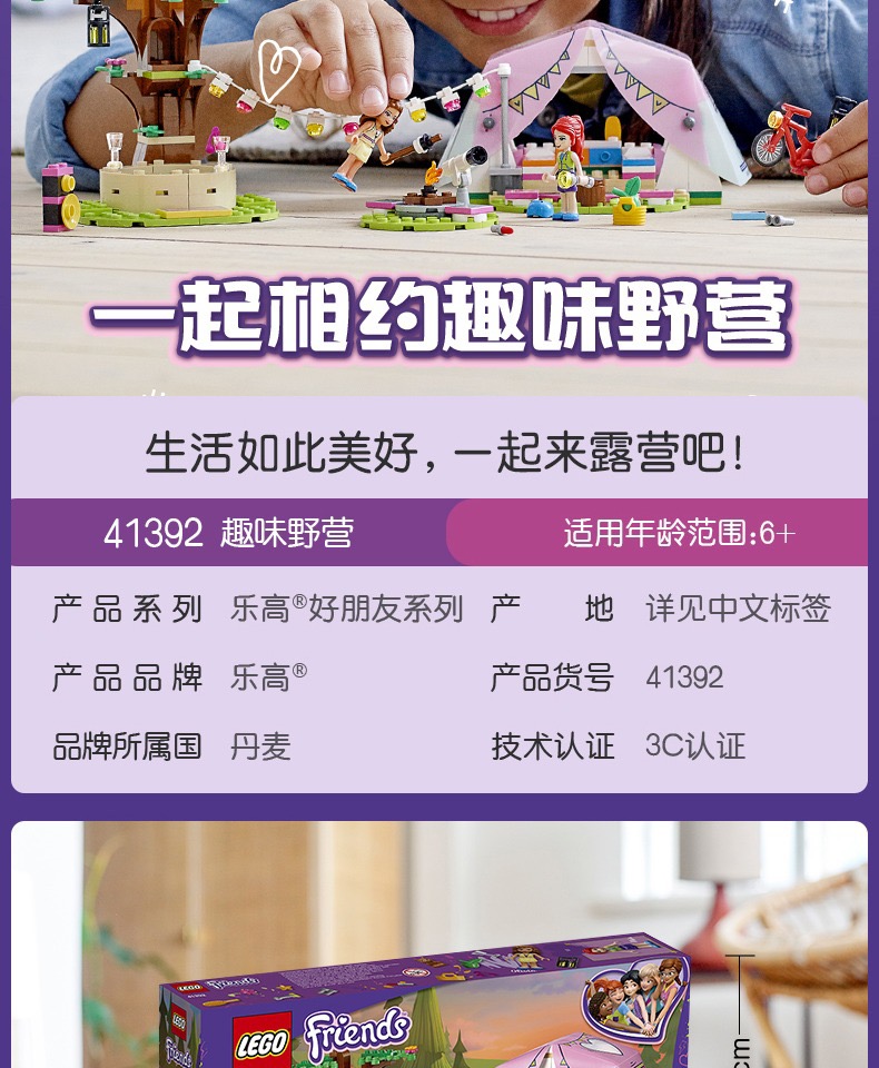Lego/乐高 好朋友系列 趣味野营 6+ 41392-CN