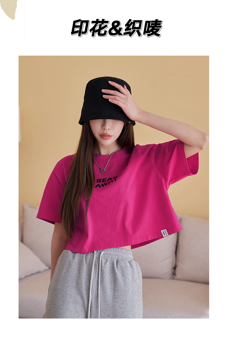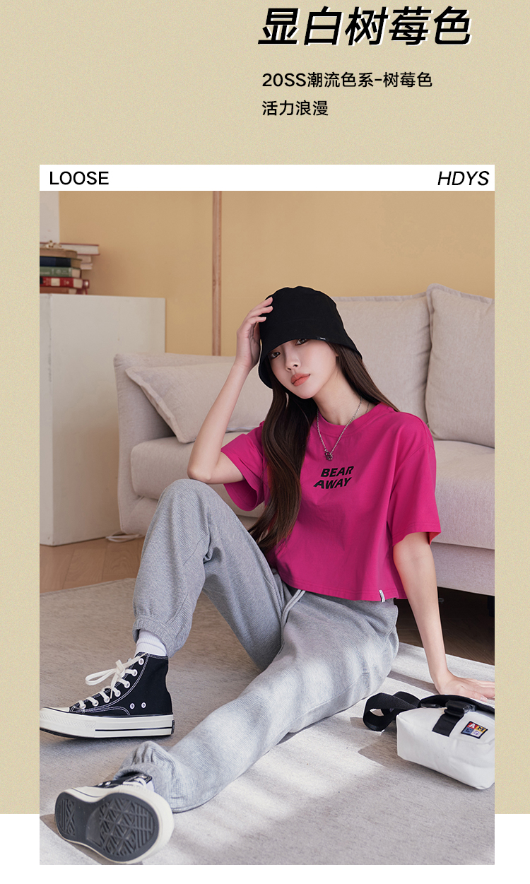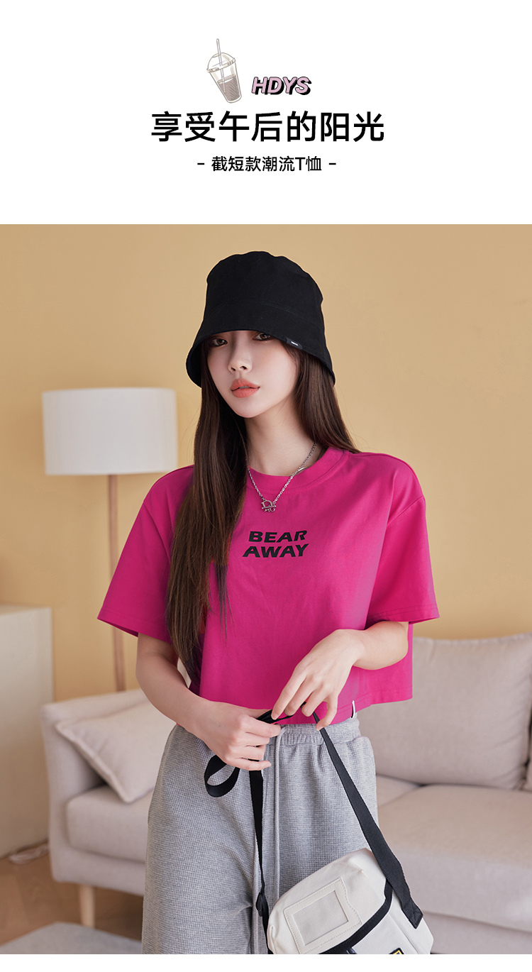 韩都衣舍圆领短袖T恤2023夏季新款女装短款宽松显瘦上衣NFH0049