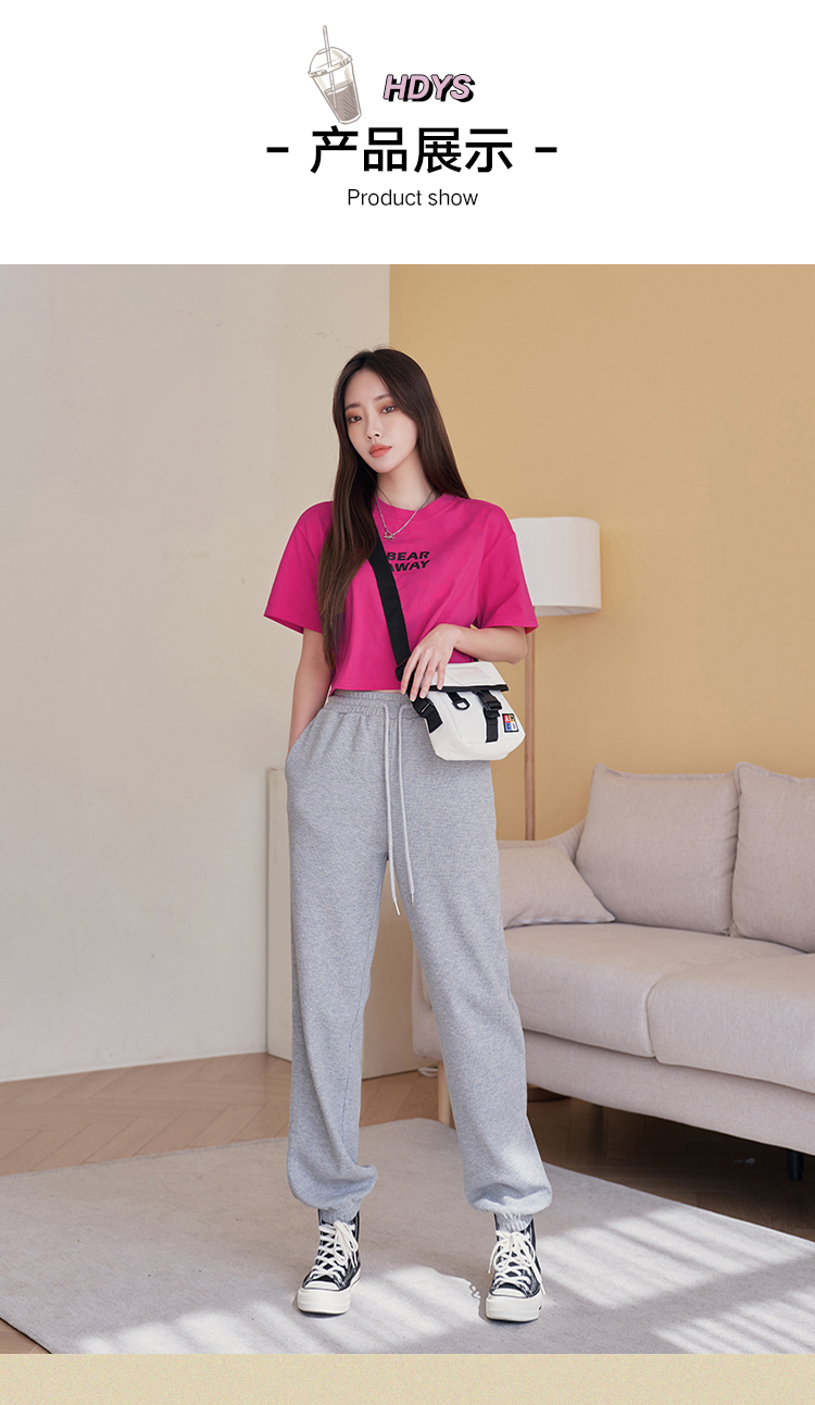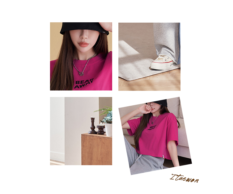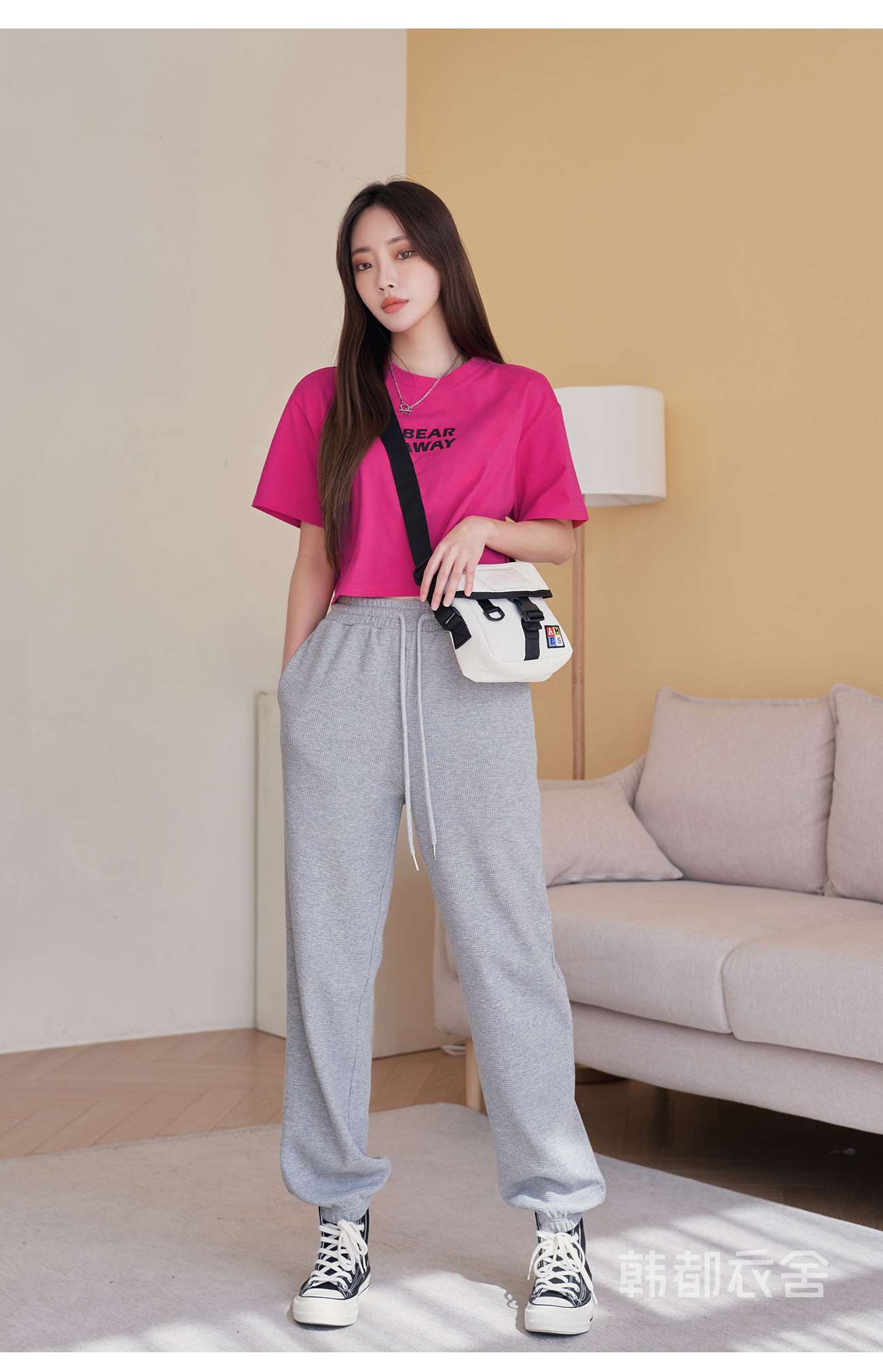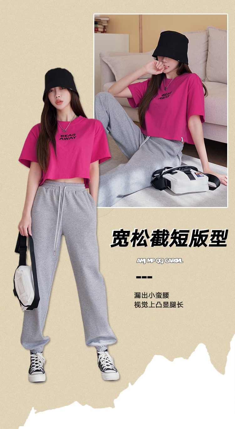 韩都衣舍圆领短袖T恤2023夏季新款女装短款宽松显瘦上衣NFH0049