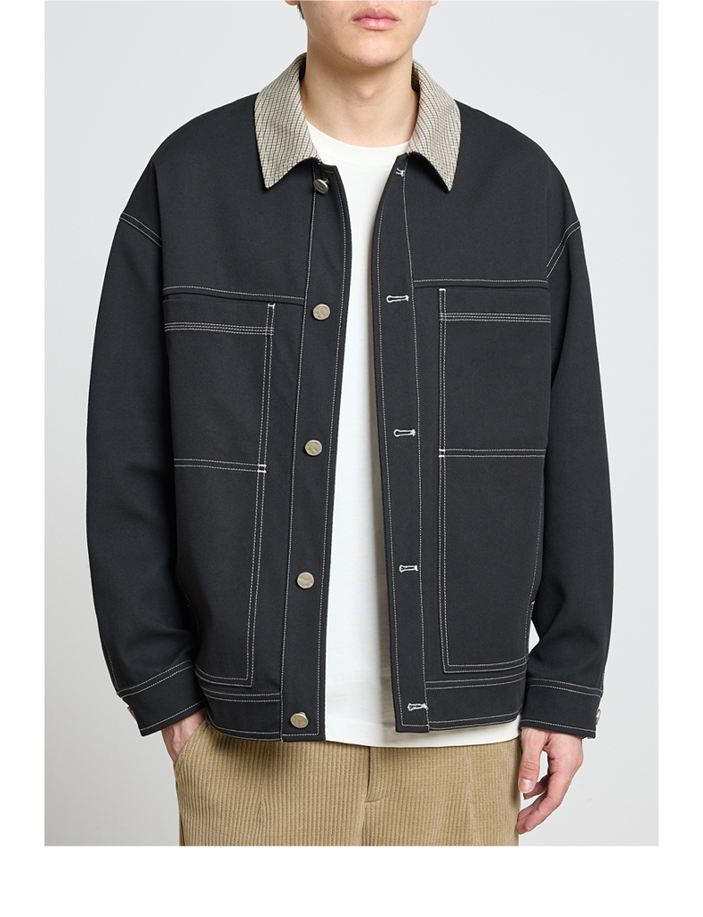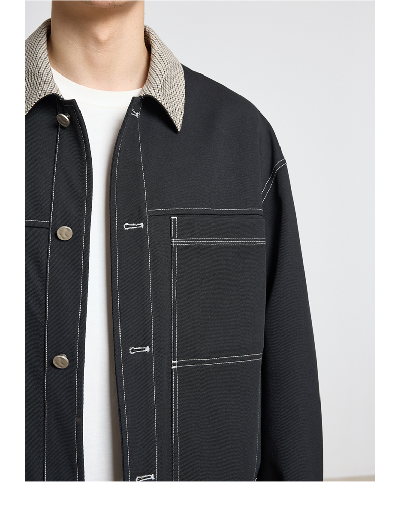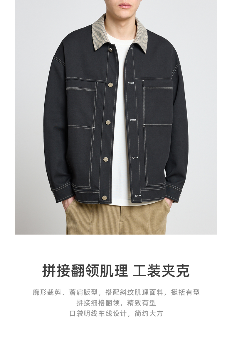 墨麦客男装2023春季新款翻领撞色夹克男士休闲工装外套男潮80685