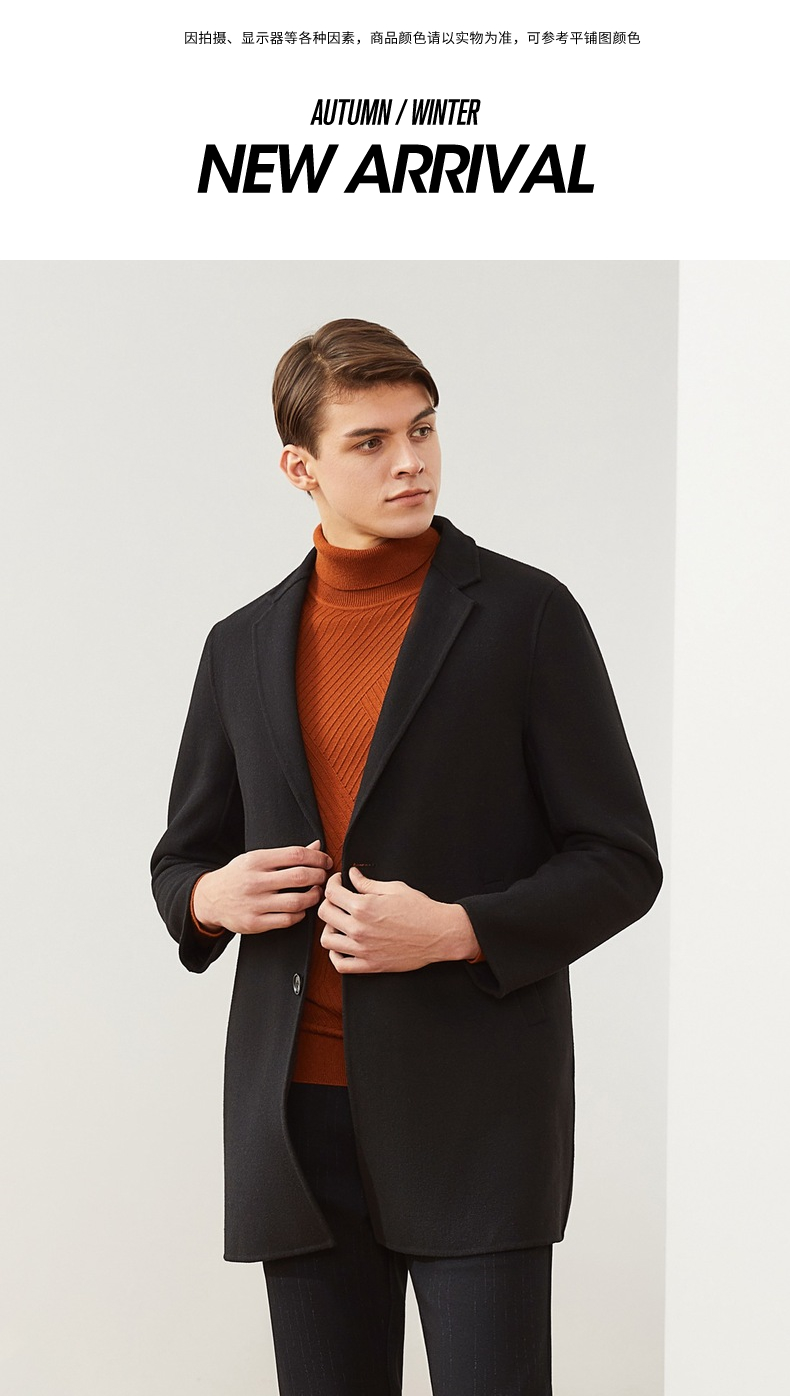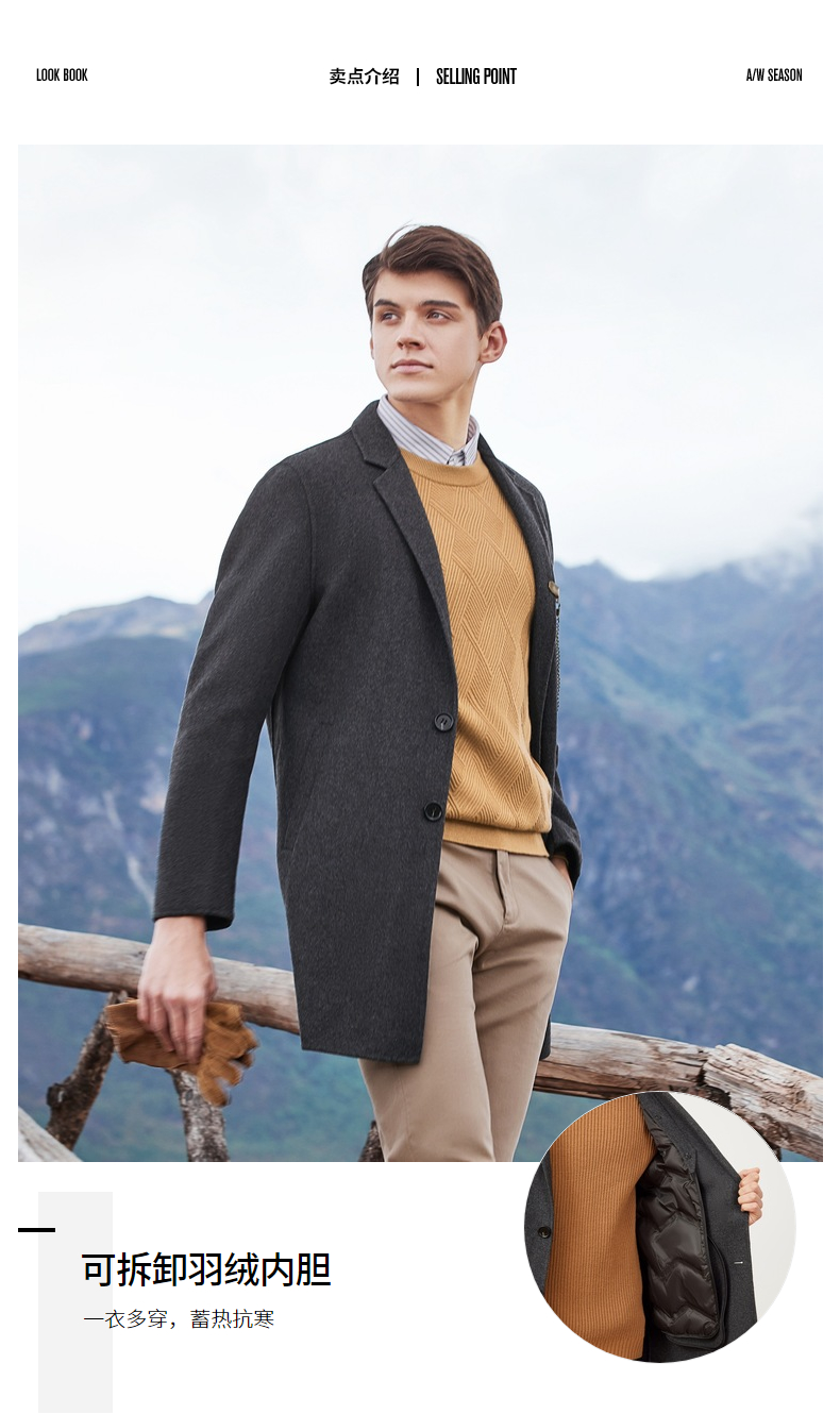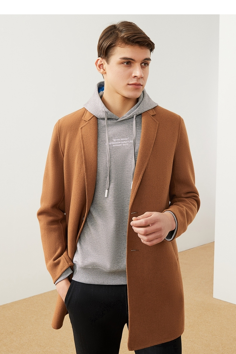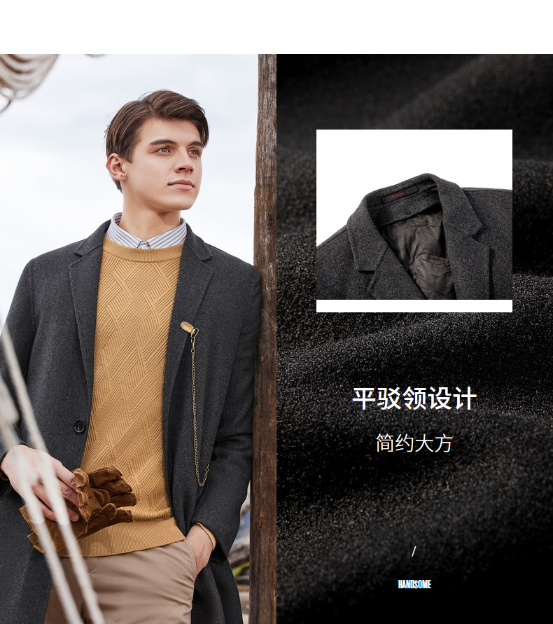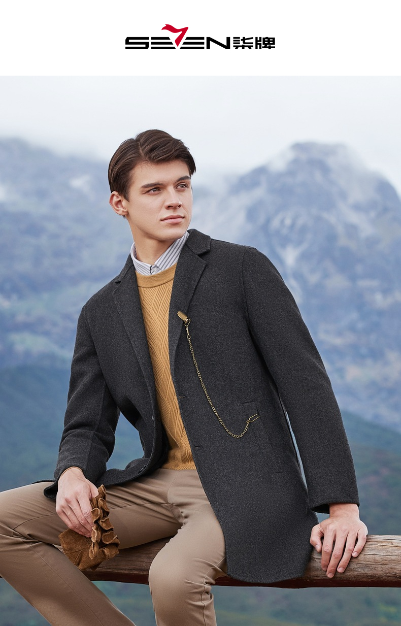 【含羊毛】柒牌毛呢大衣男商务休闲双面呢中长款羽绒内胆呢子外套121D70070