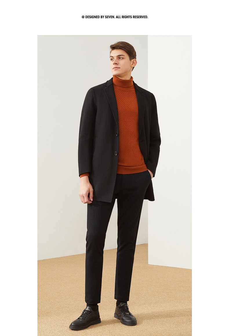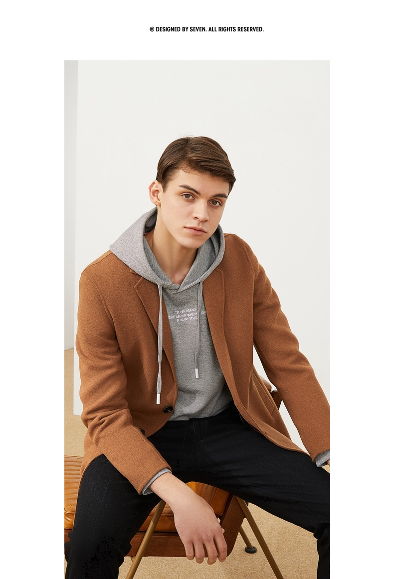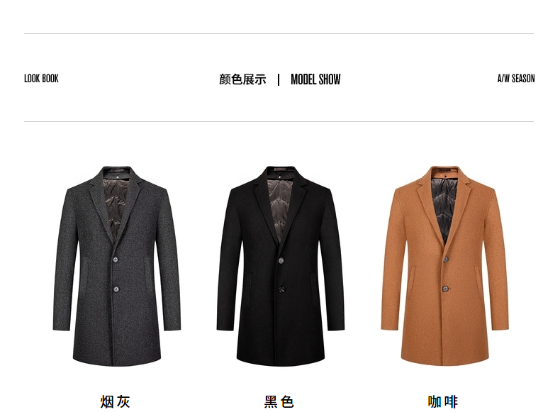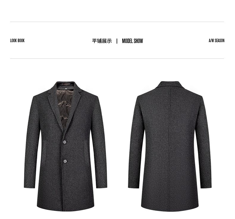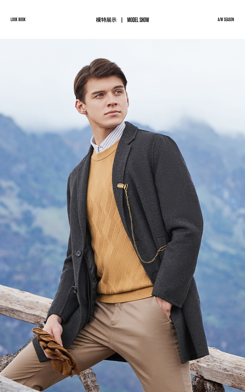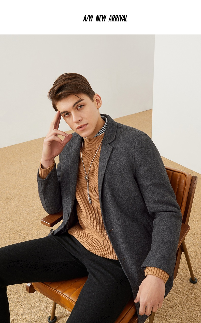 【含羊毛】柒牌毛呢大衣男商务休闲双面呢中长款羽绒内胆呢子外套121D70070