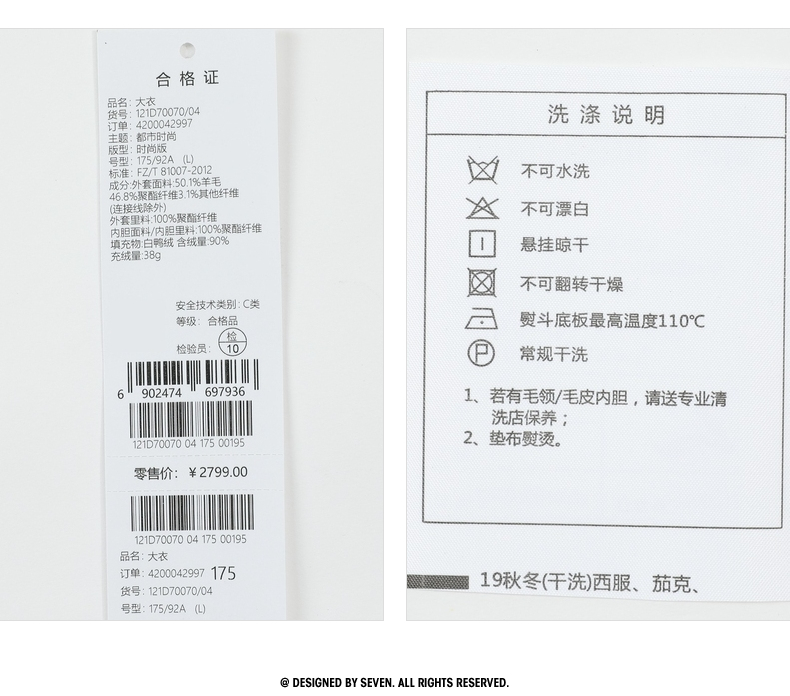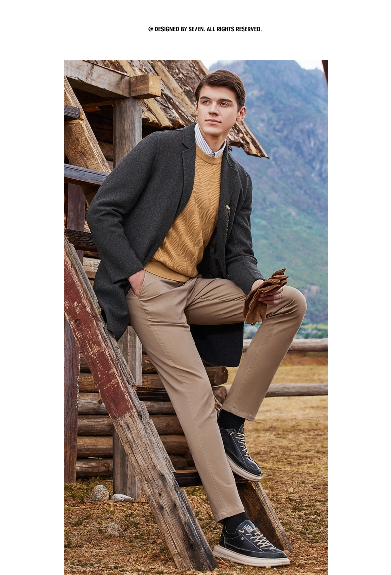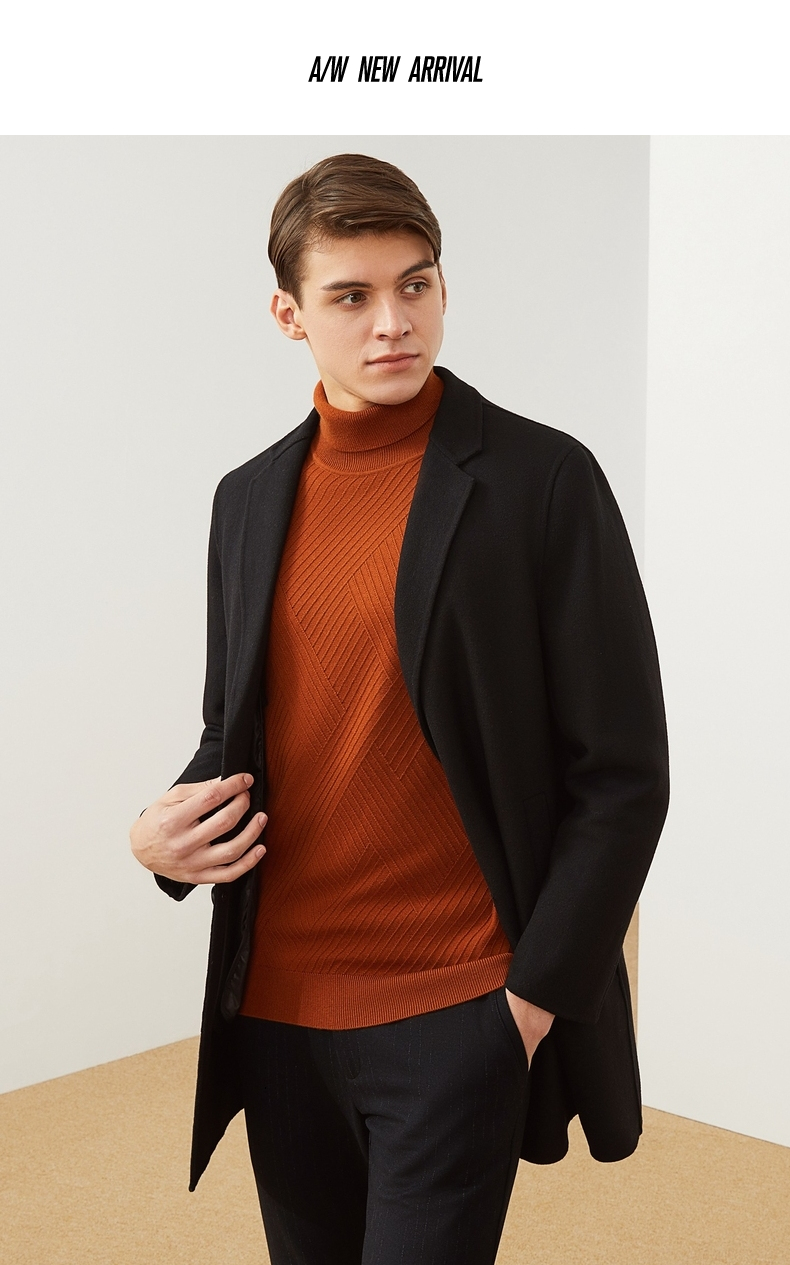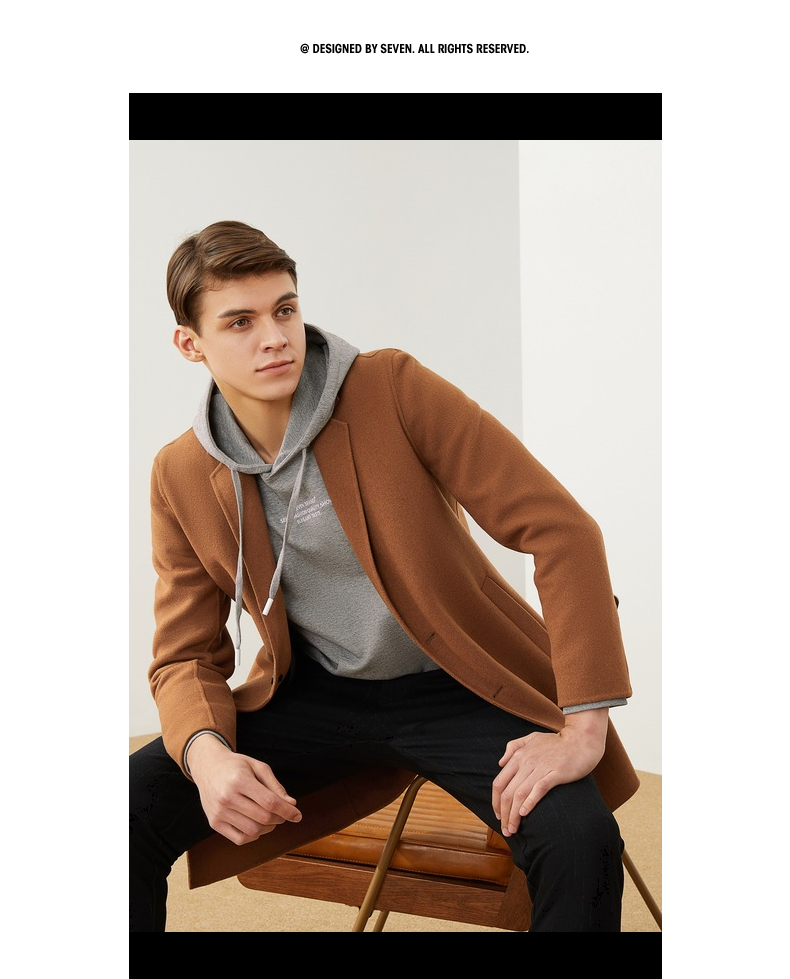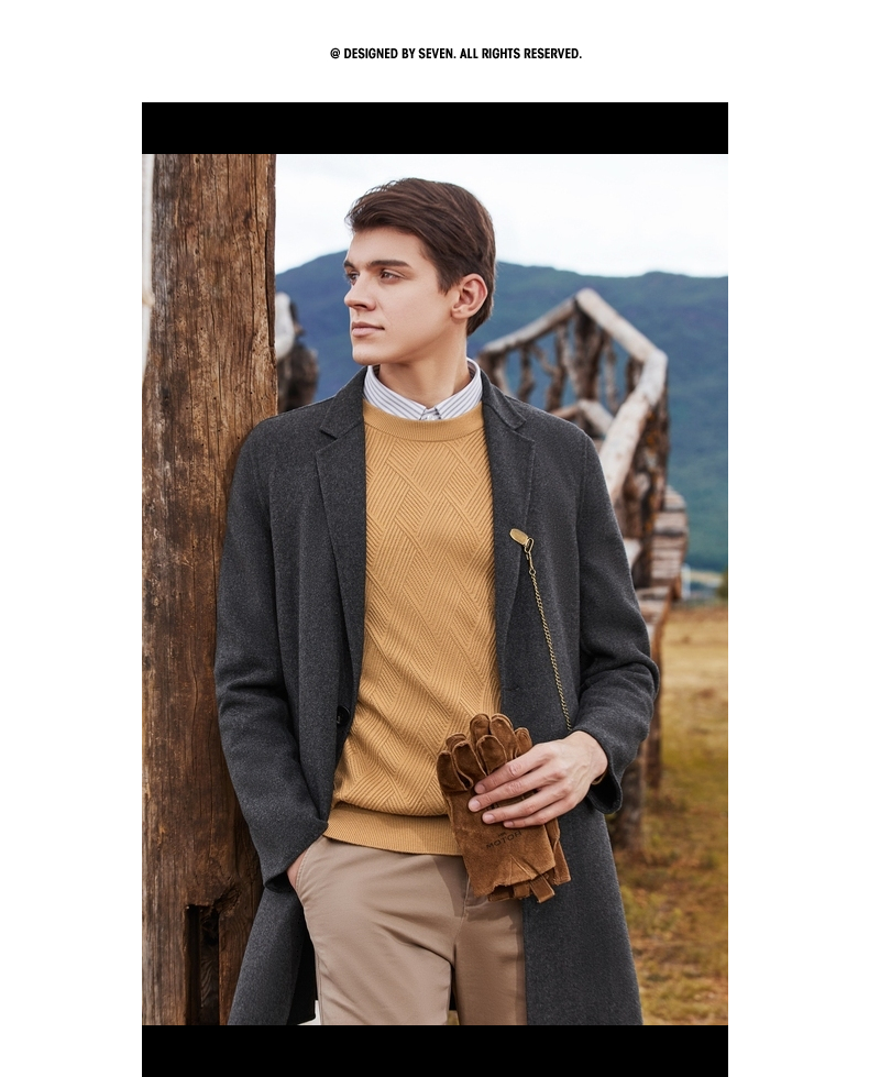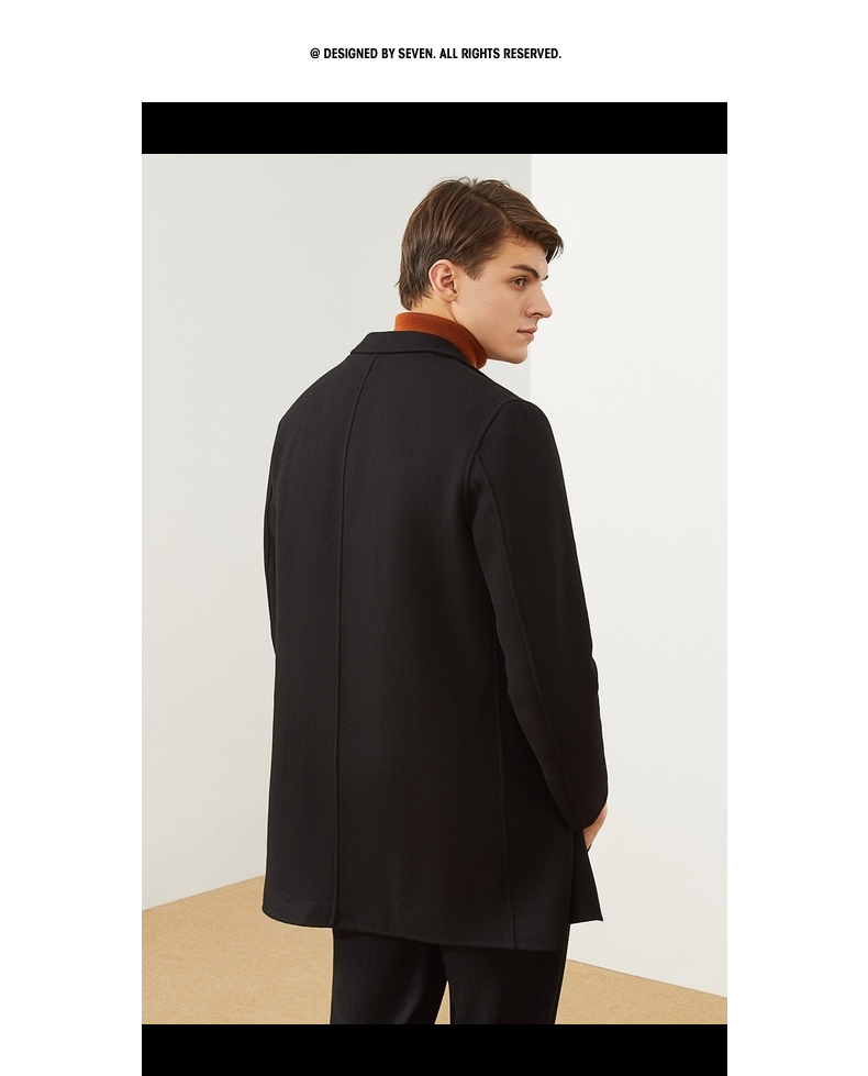 【含羊毛】柒牌毛呢大衣男商务休闲双面呢中长款羽绒内胆呢子外套121D70070
