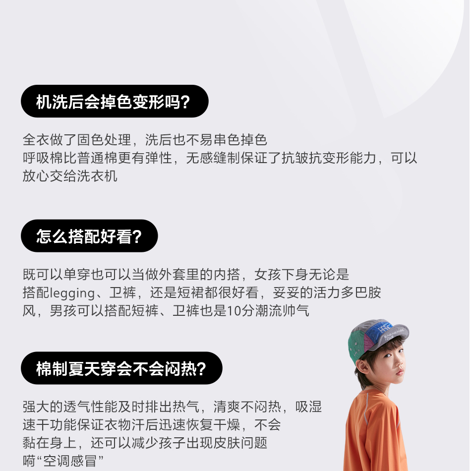 【弹力大】【咕噜日记】童装儿童圆领防晒T恤男女童透气长袖大童上衣PCTX2505