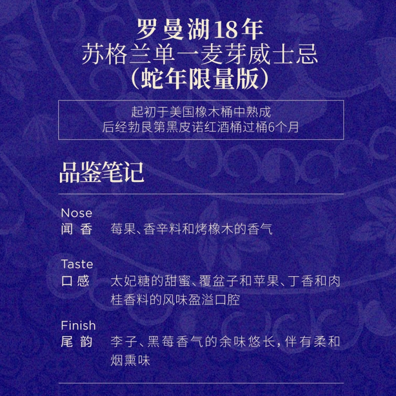 罗曼湖(Loch Lomond)18年苏格兰单一麦芽威士忌-蛇年限量