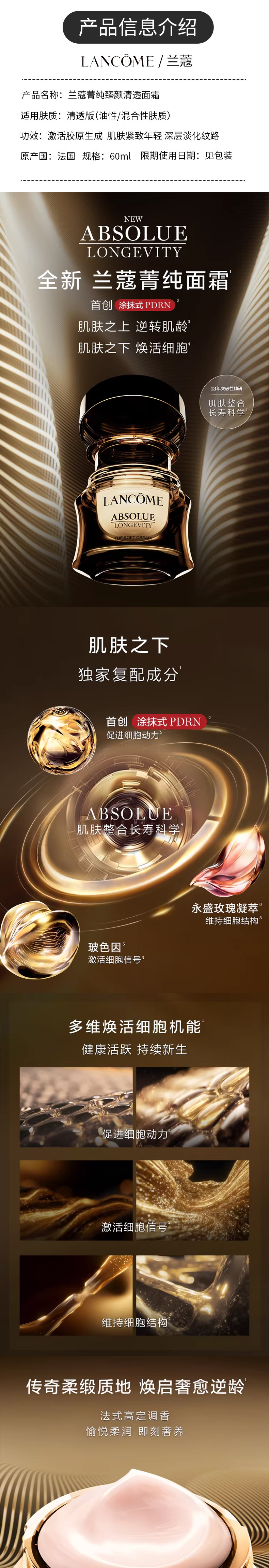 心选丨【香港直邮】 LANCOME/兰蔻菁纯臻颜精萃乳霜面霜-60ml 轻盈版/滋润版 合并订单不发货