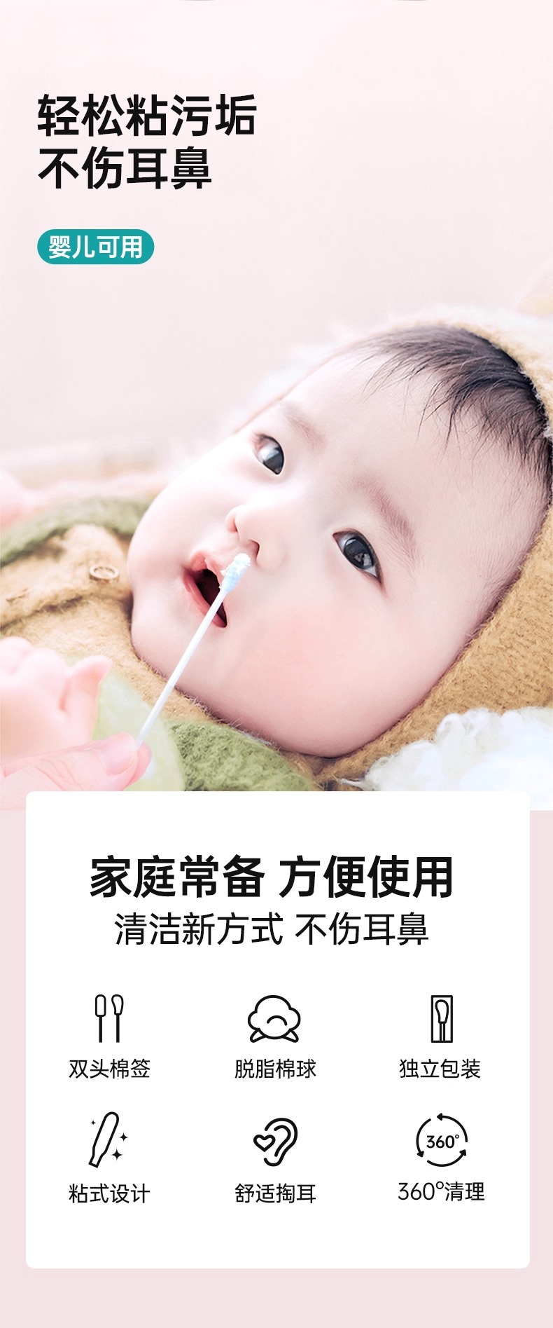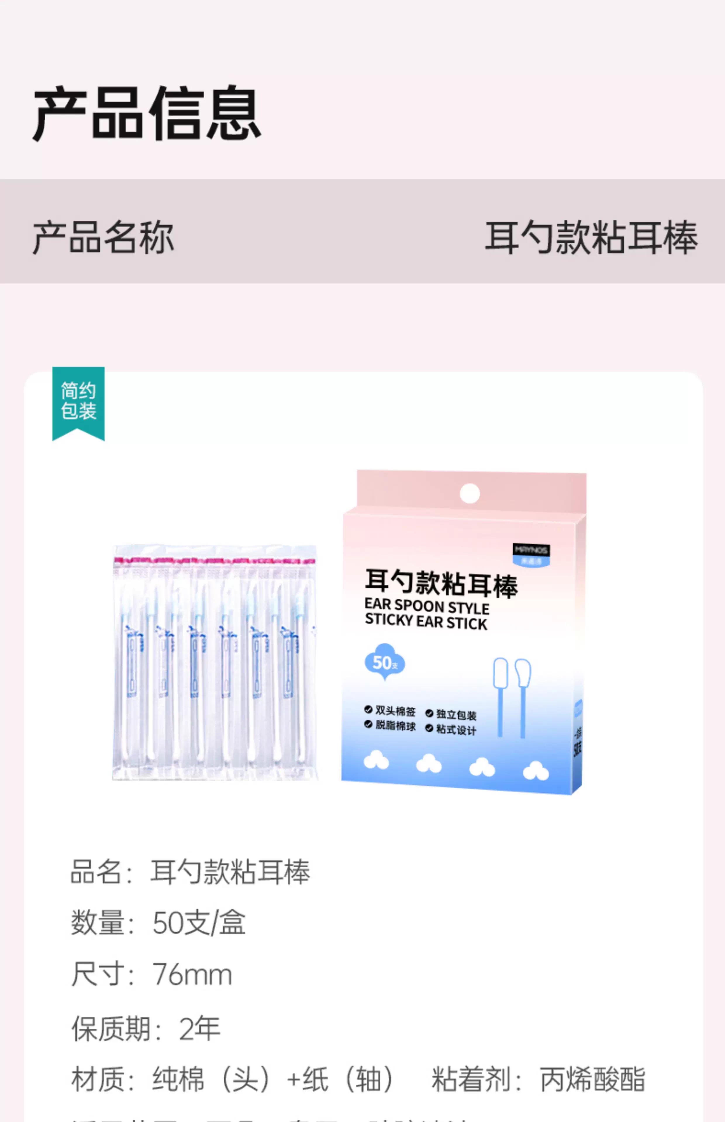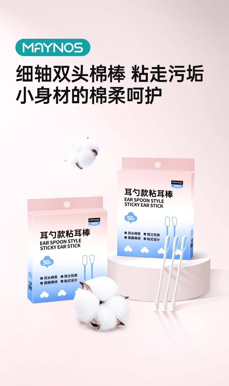 【MAYNOS耳勺款粘耳棒】 细轴双头棉棒 粘走污垢小身材的棉柔呵护