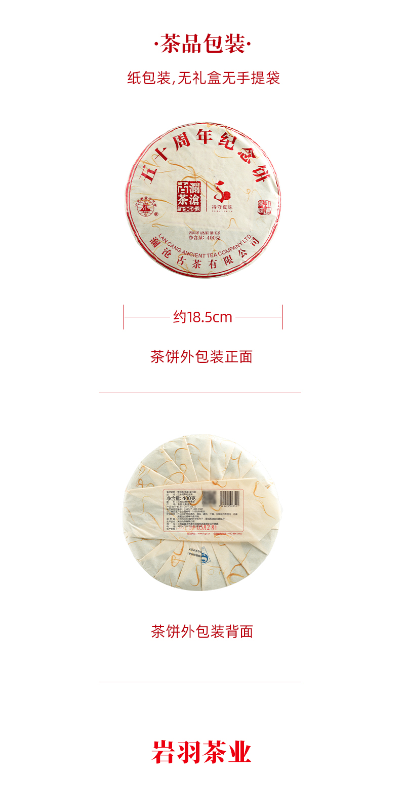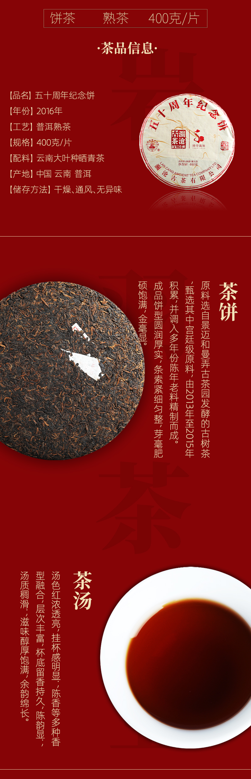 澜沧古茶2016年五十周年纪念饼 景迈曼弄古树熟茶