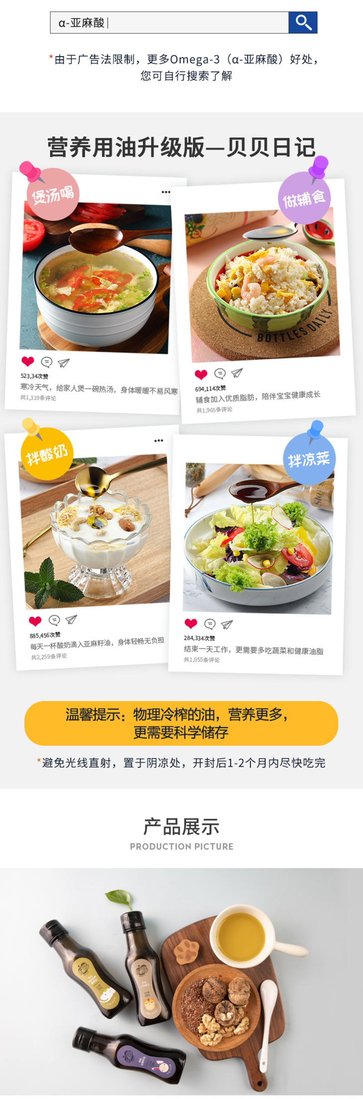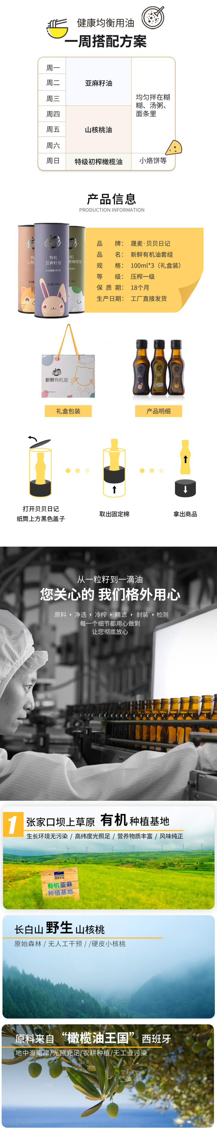 贝贝日记有机亚麻籽油、山核桃油、橄榄油 100ml*3瓶 【宝宝辅食、宝妈】包邮!