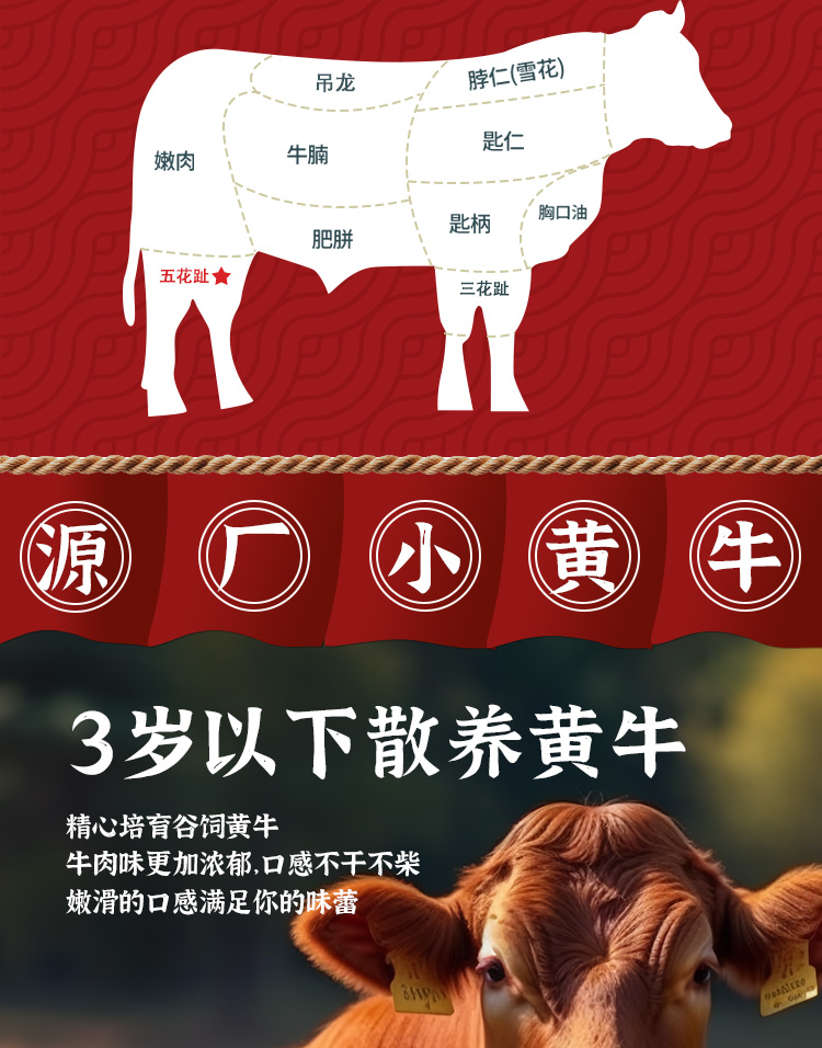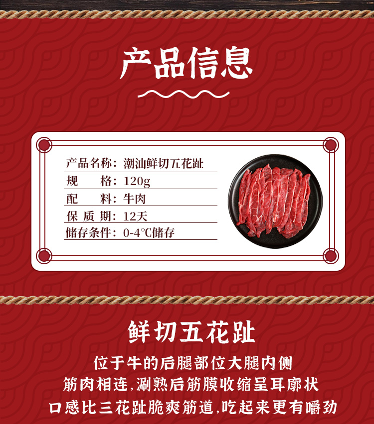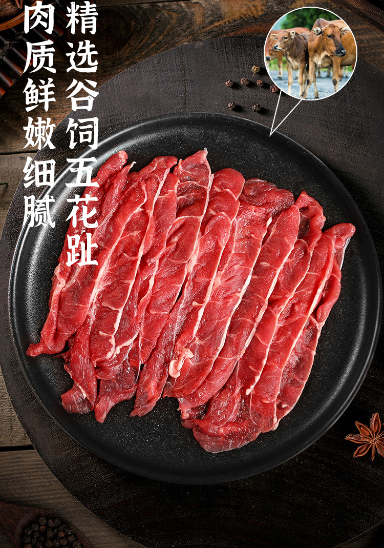 【鲜肉】恒都 黄牛潮汕鲜切五花趾120g 国产谷饲牛肉 新鲜现杀