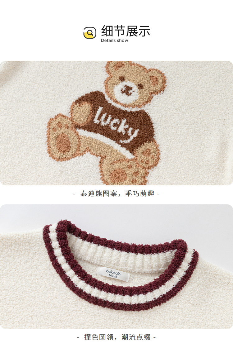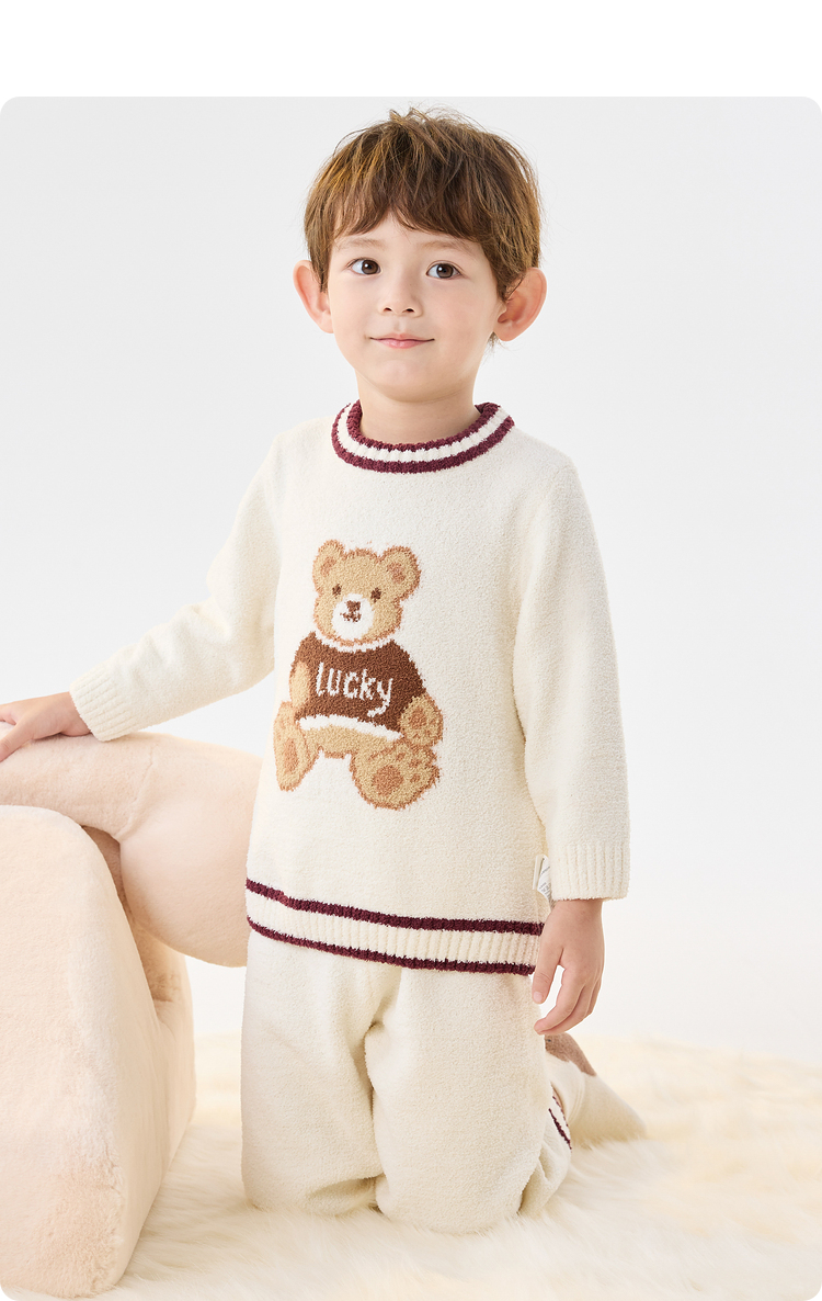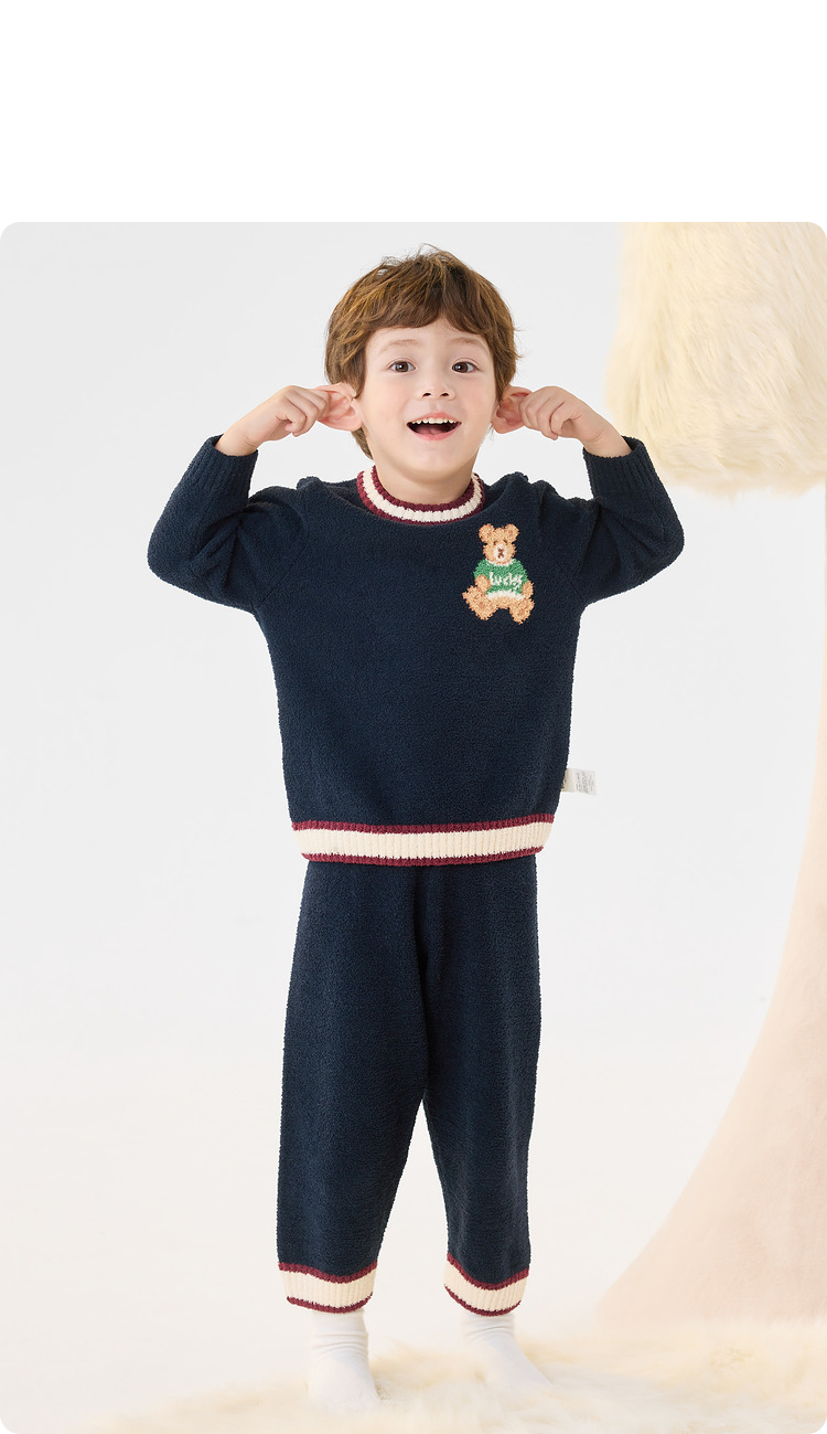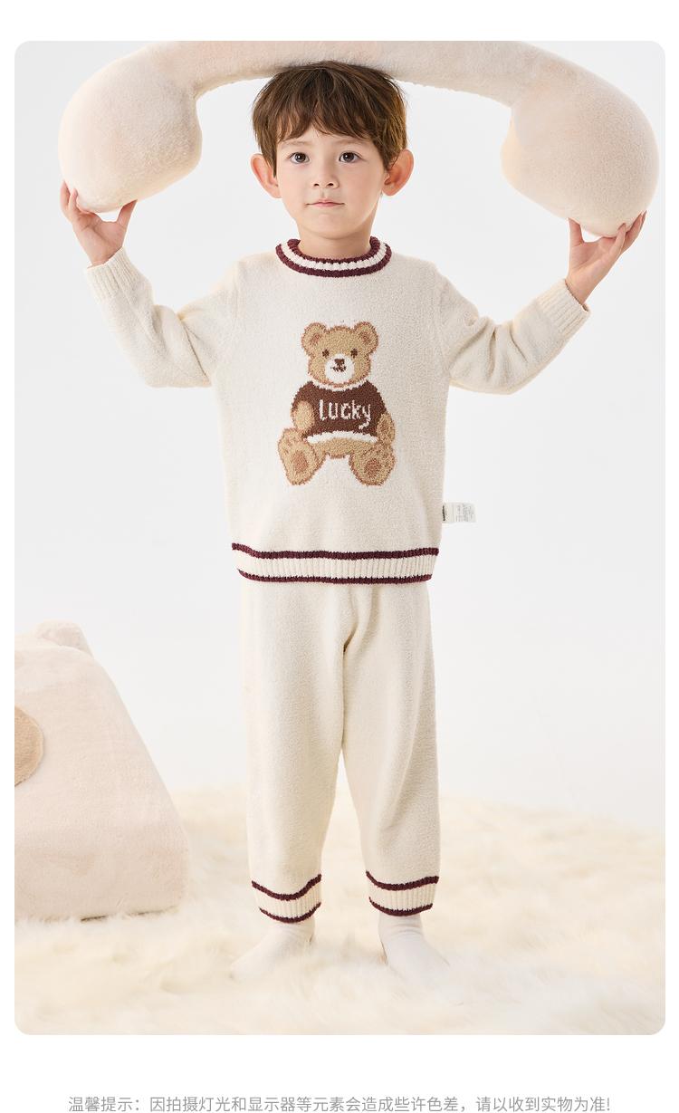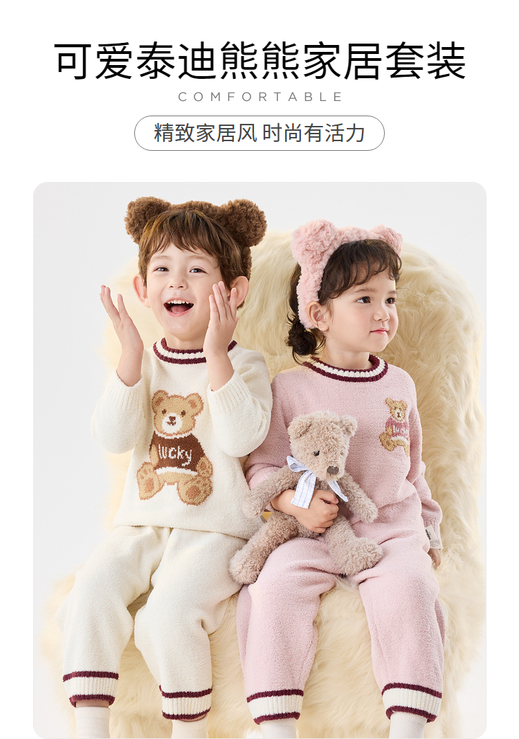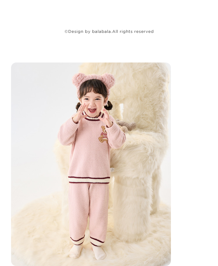 巴拉巴拉儿童家居服套装冬季半边绒男女童睡衣保暖小童宝宝小熊潮