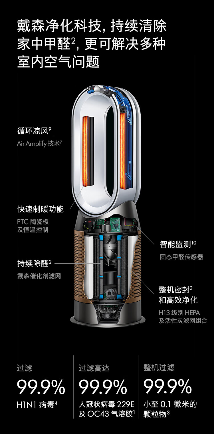 戴森DYSON HP09 多功能空气净化 兼具暖风扇 除螨除尘除过敏原 过滤花粉 宠物毛发整屋净化 黑金色