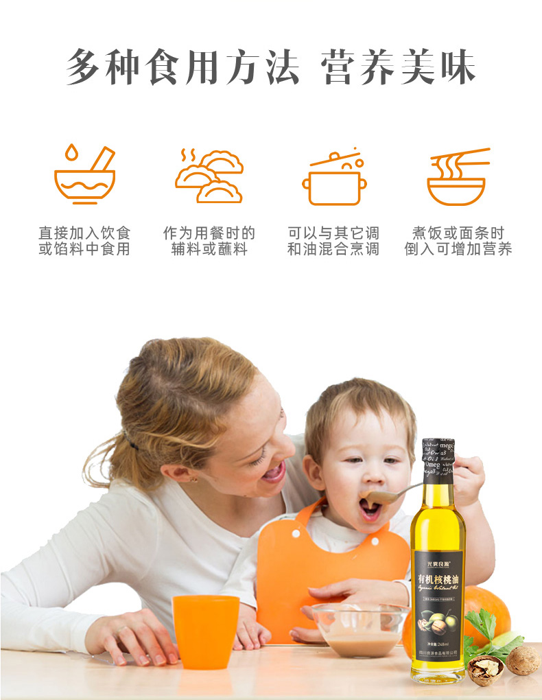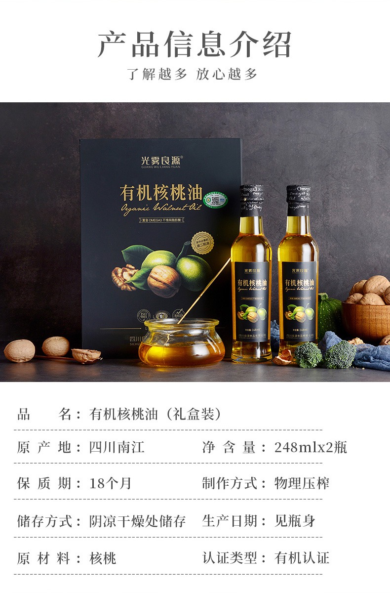 有机核桃油 母婴辅食专用油 物理冷榨 248mlx2礼盒