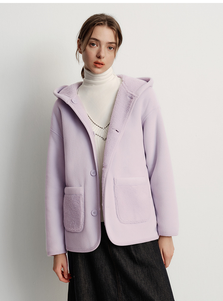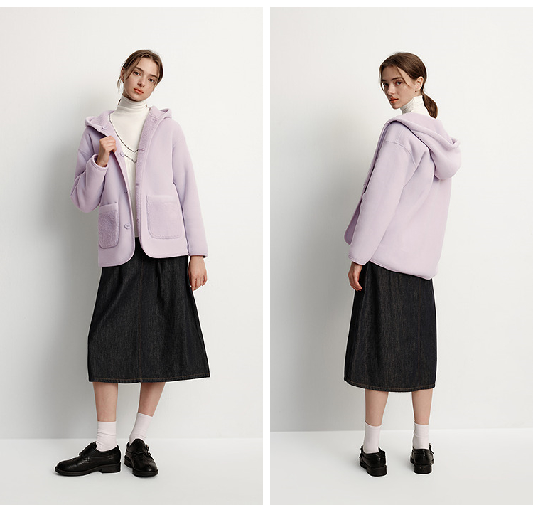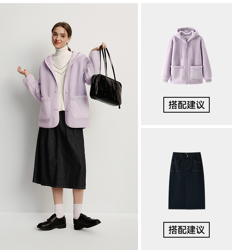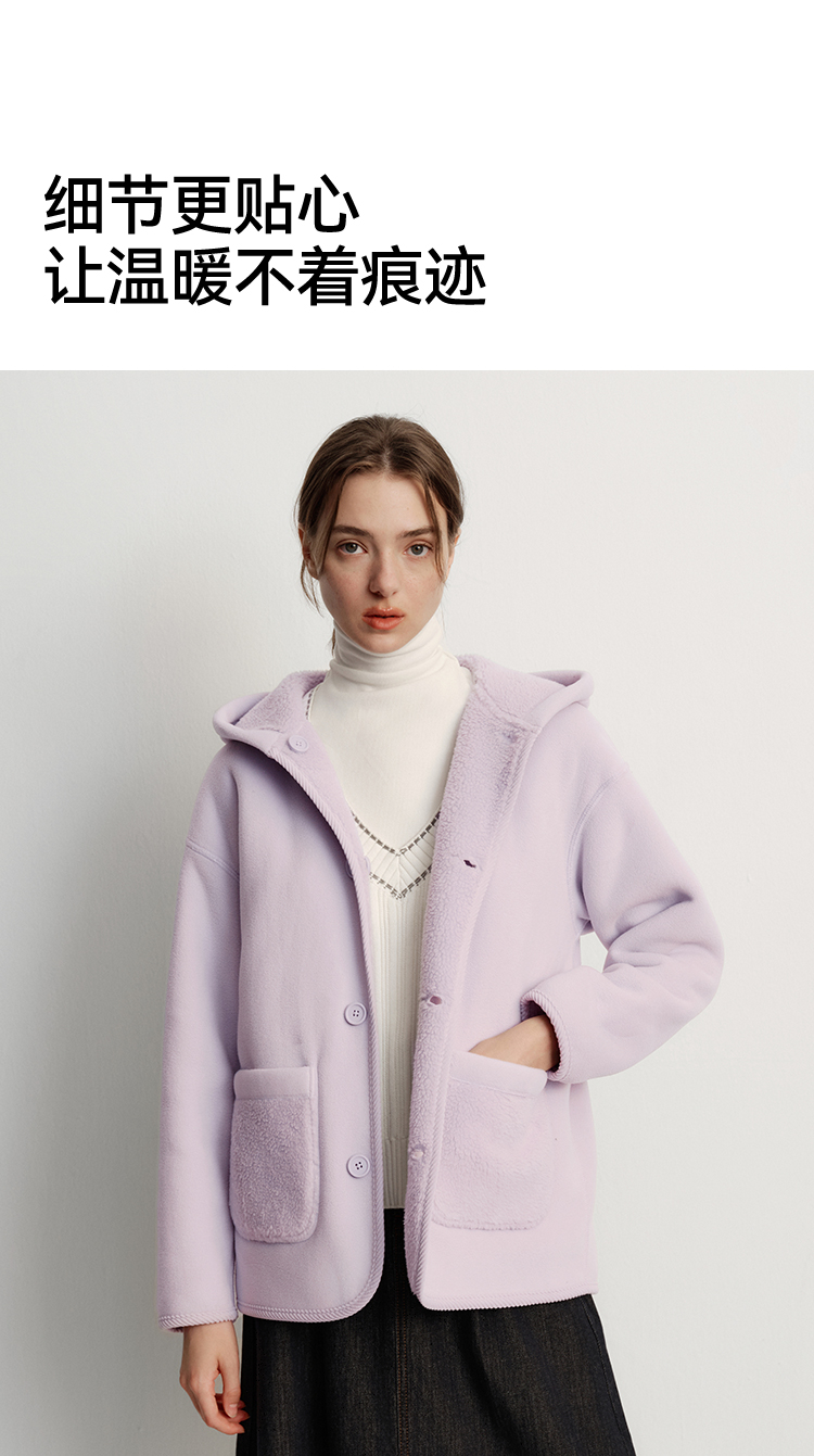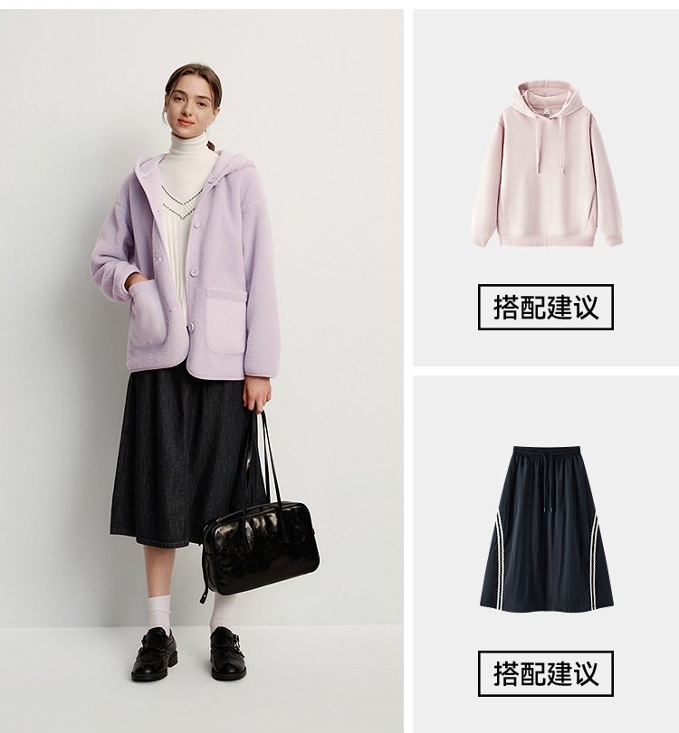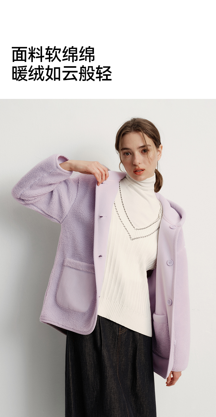 森马外套女冬季中长款两面穿仿羊羔毛摇粒绒2025新款纯色慵懒夹克