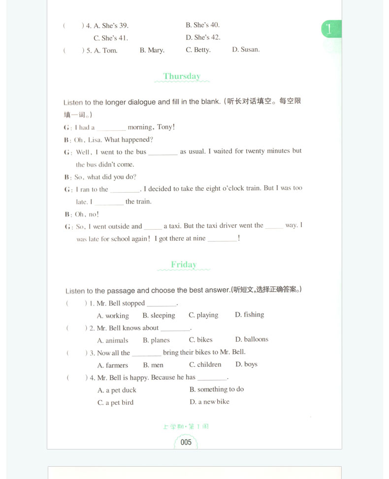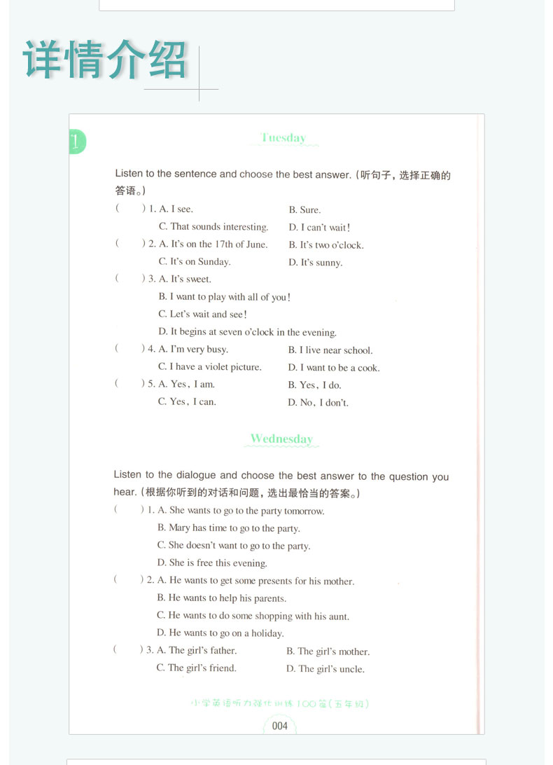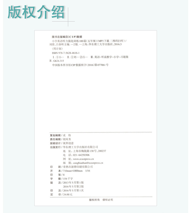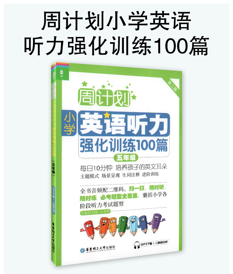 周计划英语听力 强化训练100篇 五年级/5年级小学英语听力(附赠MP3下载+二维码扫听) 华东理工大学出版社