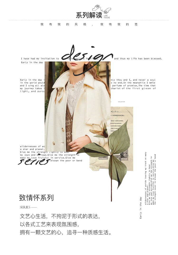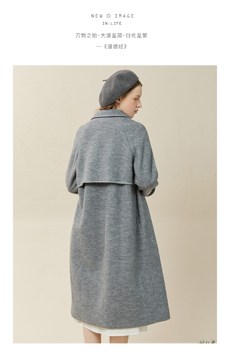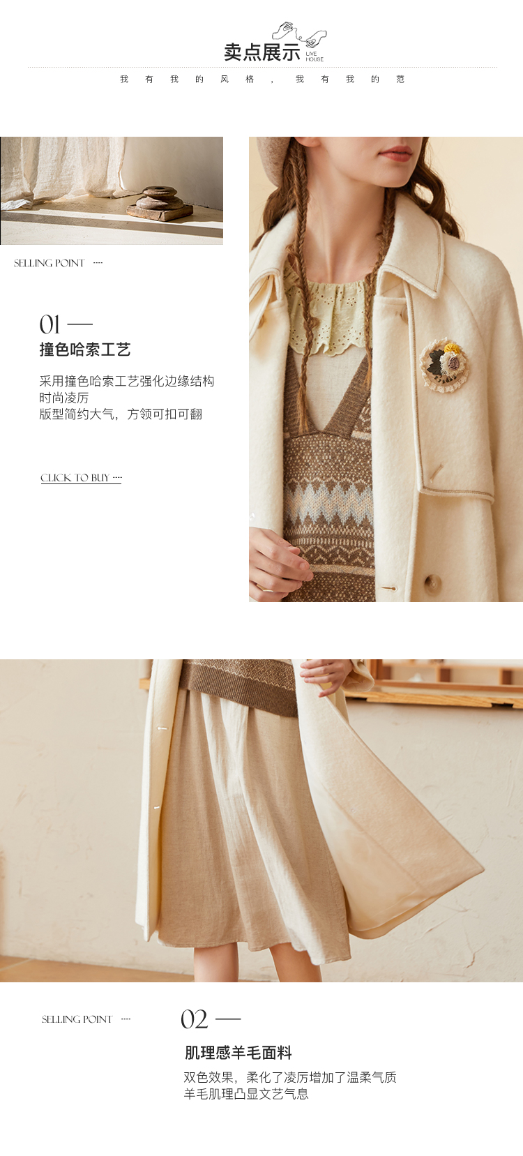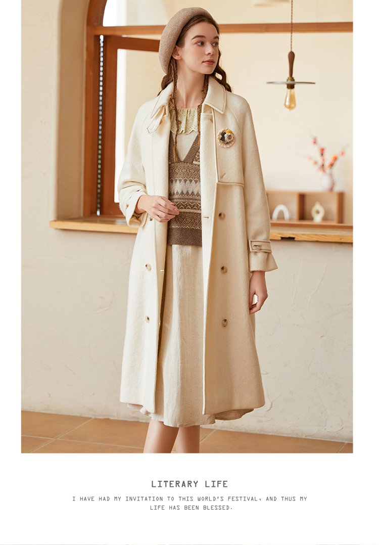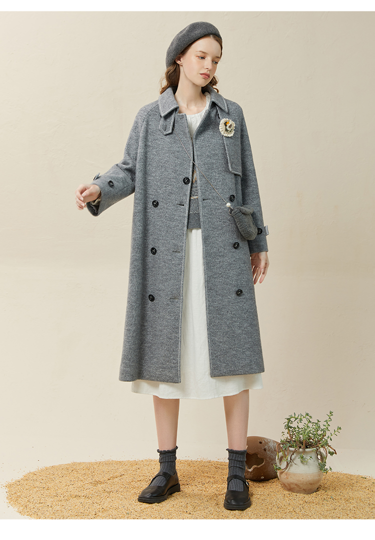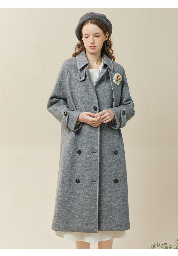 Famecoco范可儿羊毛呢子大衣女冬中长款双排扣方领肌理感外套F228AN001