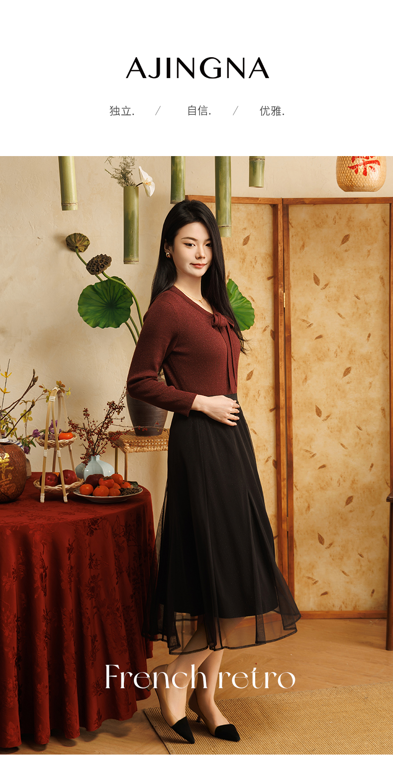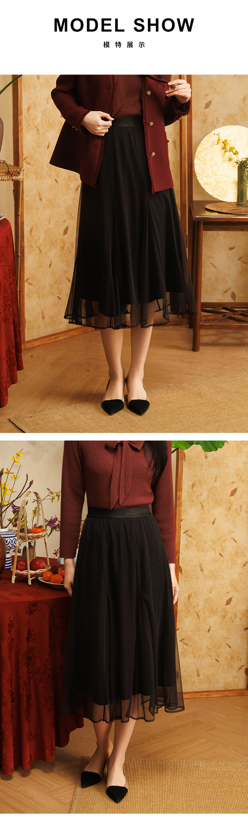 【商场同款】阿菁娜2025春季新款层次感拼接纱半裙A30C113017