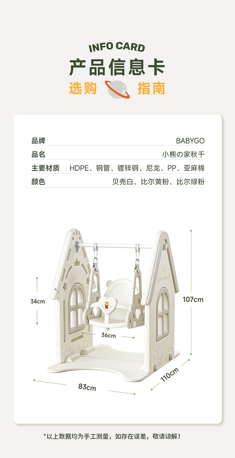 BABYGO秋千室内儿童家用婴幼儿宝宝家庭庭院户外荡秋千游乐玩具