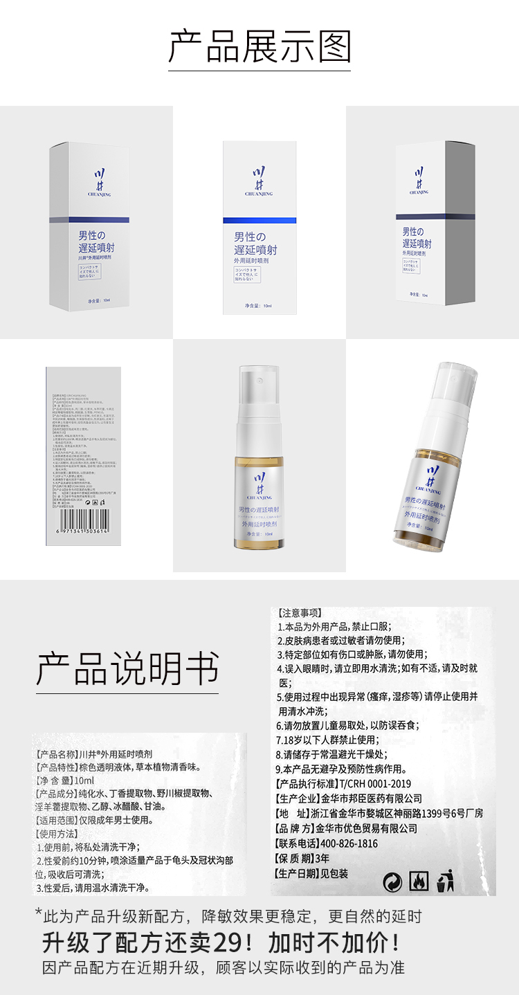 川井 延时喷剂正品持久不射延长时间男用延迟喷雾情趣用品 10ml