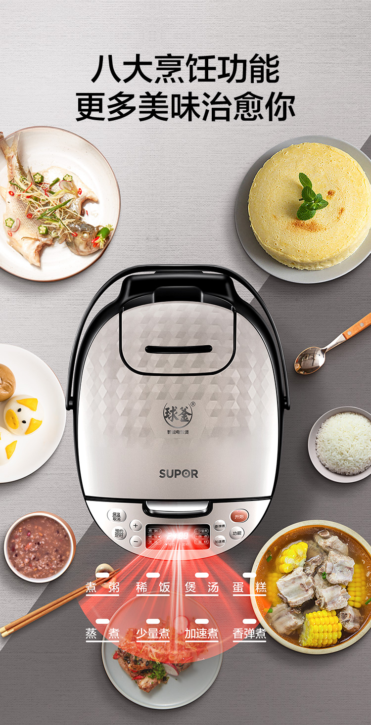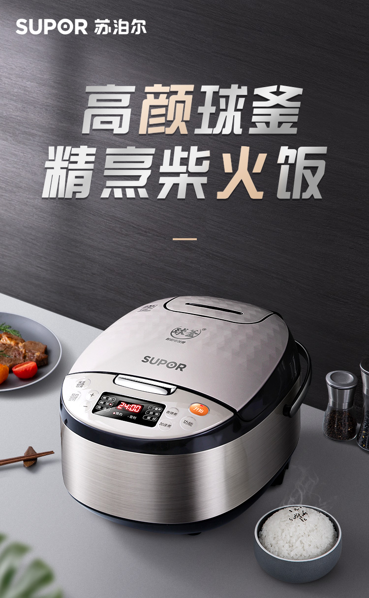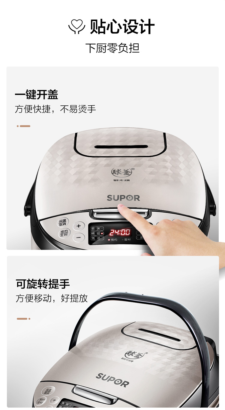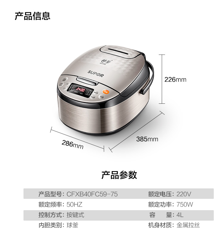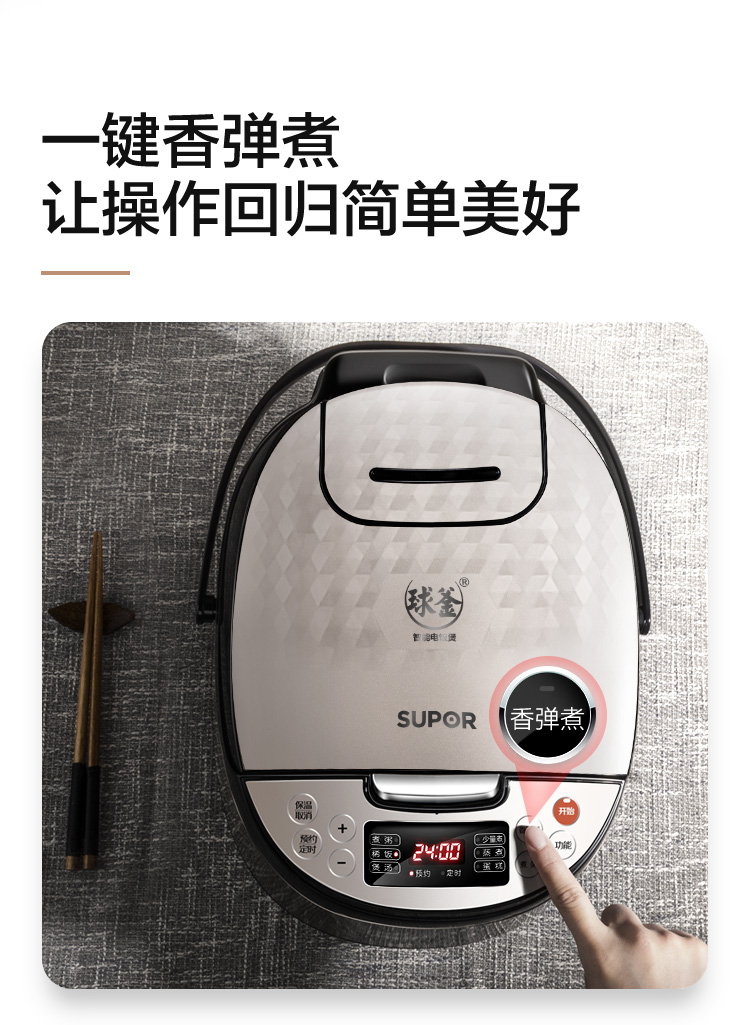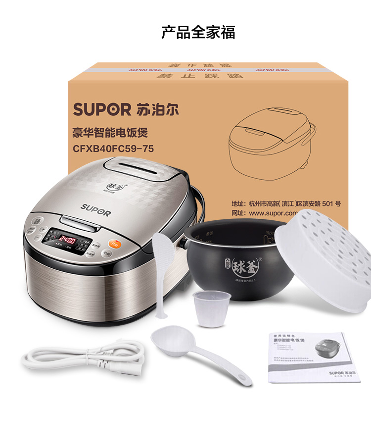 苏泊尔(SUPOR) 4L容量 智能电饭煲 电饭锅 球釜内胆 多功能 智能预约 香槟金色CFXB40FC59-75