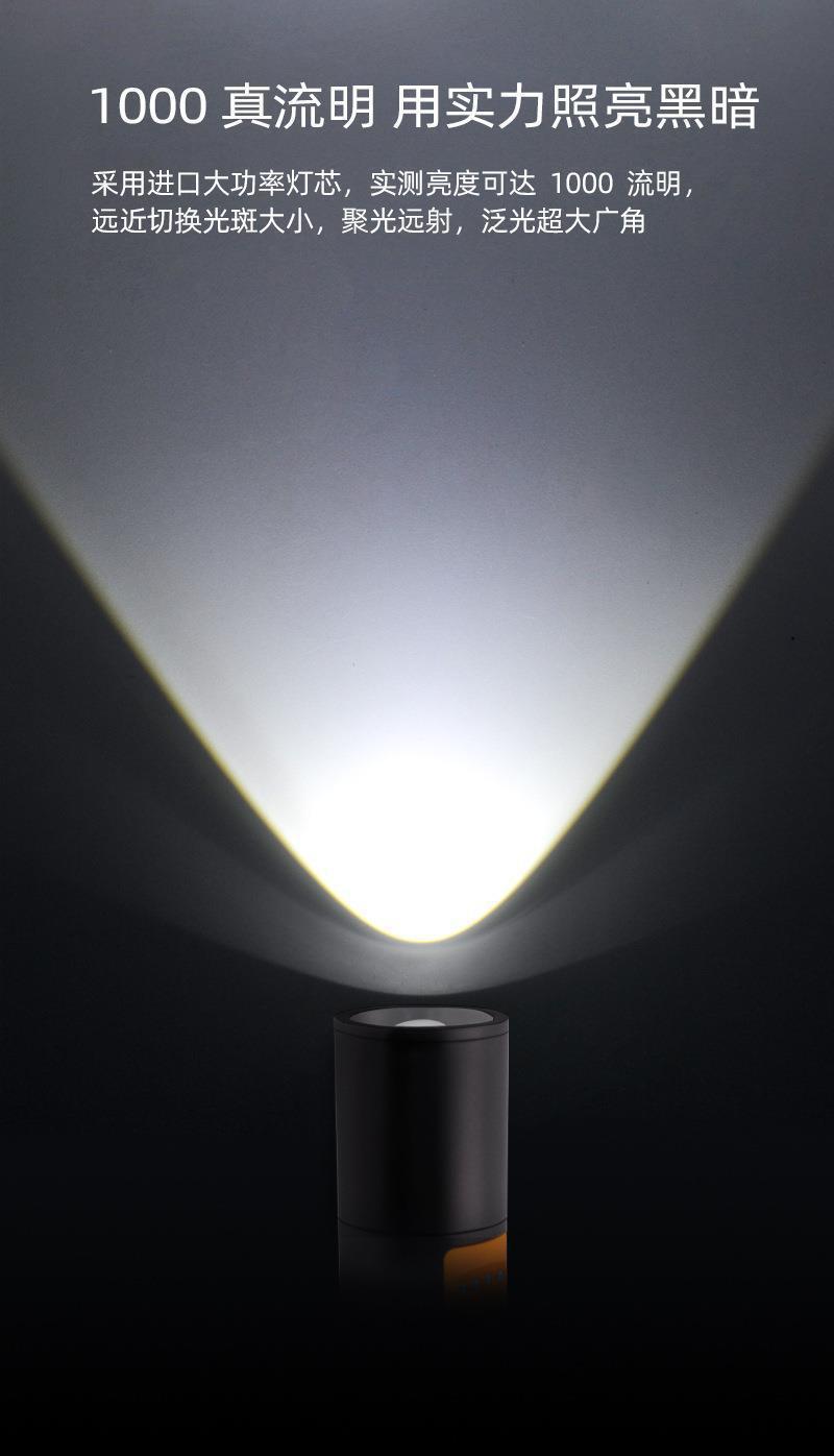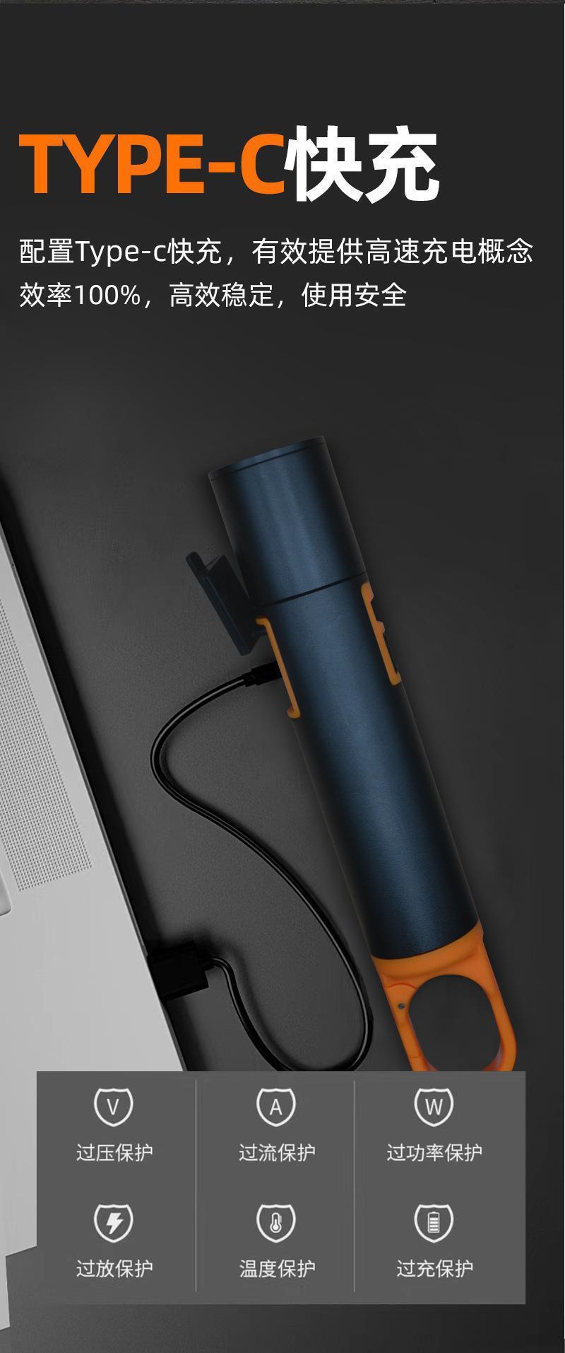 跨境强光LED手电筒type-c充电露营工作灯充电宝铝合金白激光手电