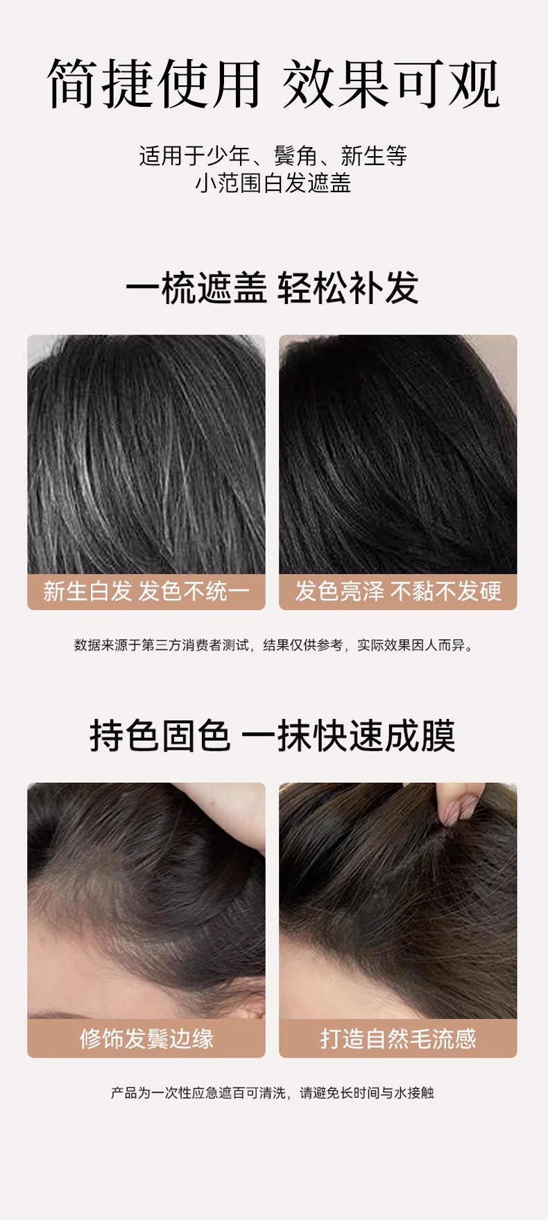 【迅速上色遮盖白发❗️防水速干清爽不黏腻】小金管多肽美发笔一梳遮白发神器美发棒补色神器B2持久。ja